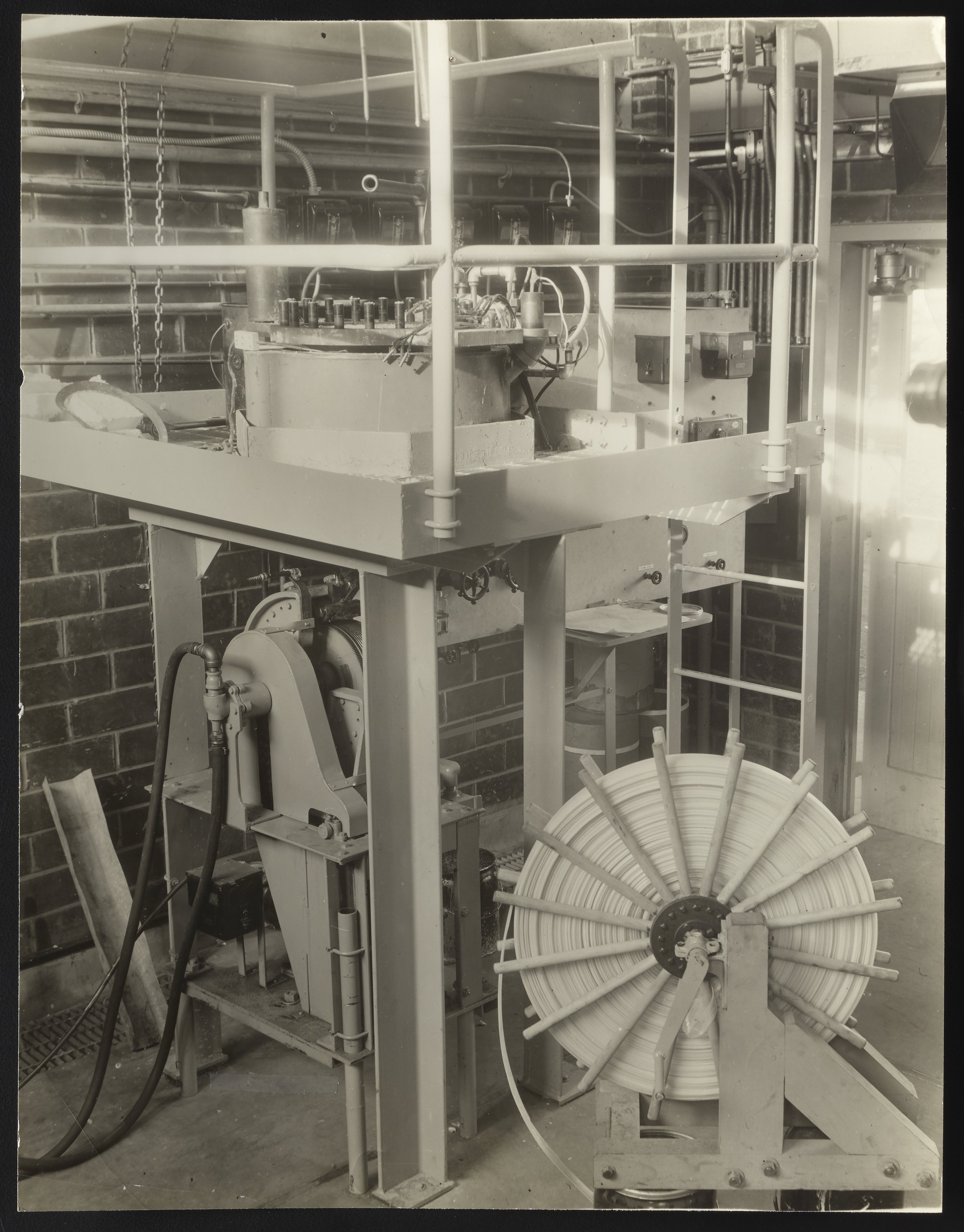 “50-Pound Autoclave and Casting Equipment,” February 12, 1937. Joseph X. Labovsky Collection of Nylon Photographs and Ephemera, Box 1. Science History Institute. Philadelphia. https://digital.sciencehistory.org/works/xk81jk41k.
