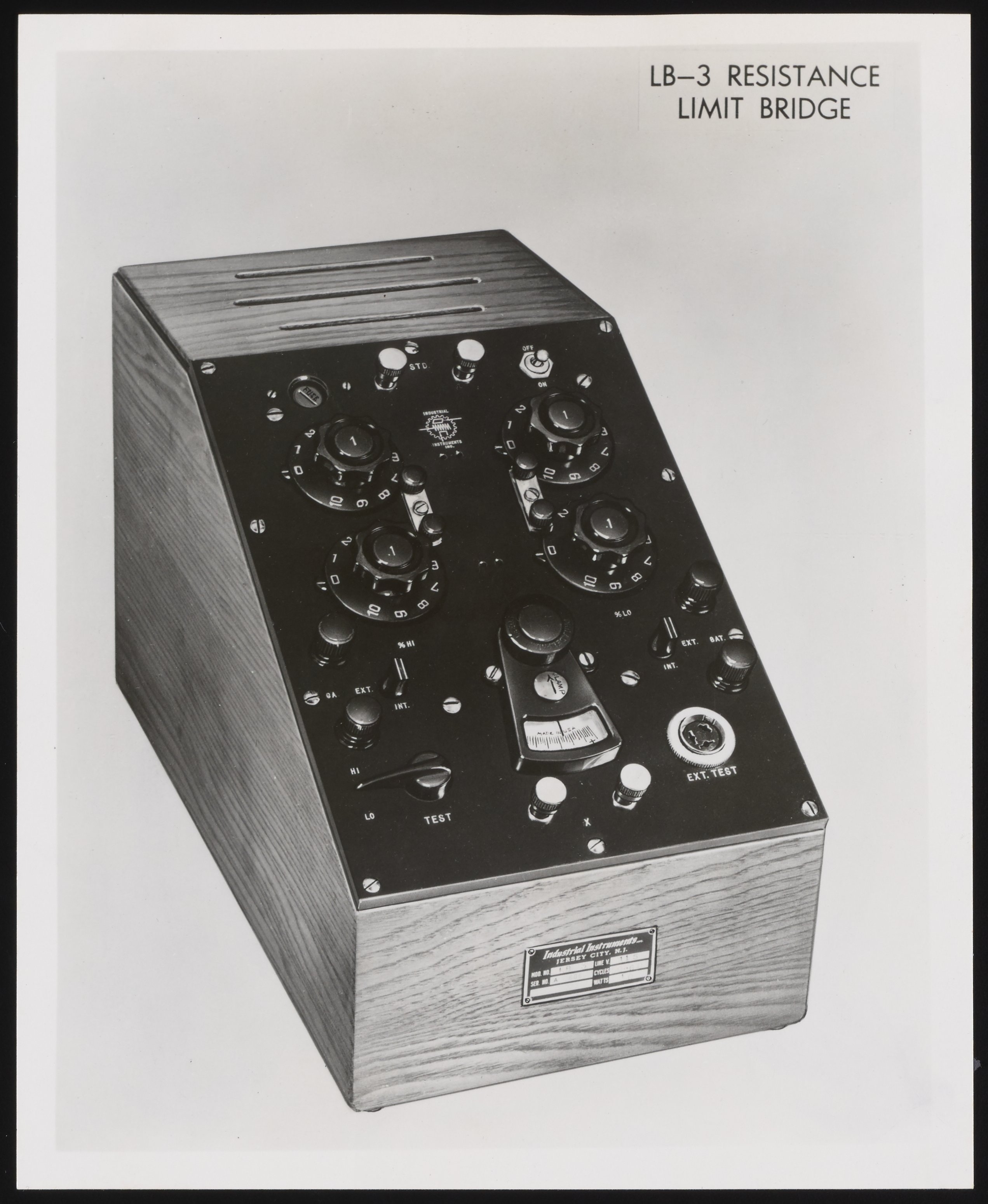 “Industrial Instruments LB-3 Resistance Limit Bridge,” n.d. Beckman Historical Collection, Box 79. Science History Institute. Philadelphia. https://digital.sciencehistory.org/works/xk81jk49s.
