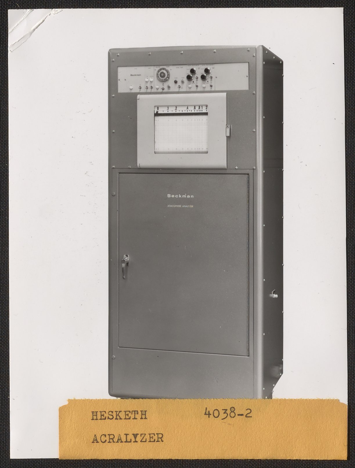 Hesketh, Dean D. “Beckman Acralyzer,” n.d. Beckman Historical Collection, Box 84. Science History Institute. Philadelphia. https://digital.sciencehistory.org/works/xk81jk612.