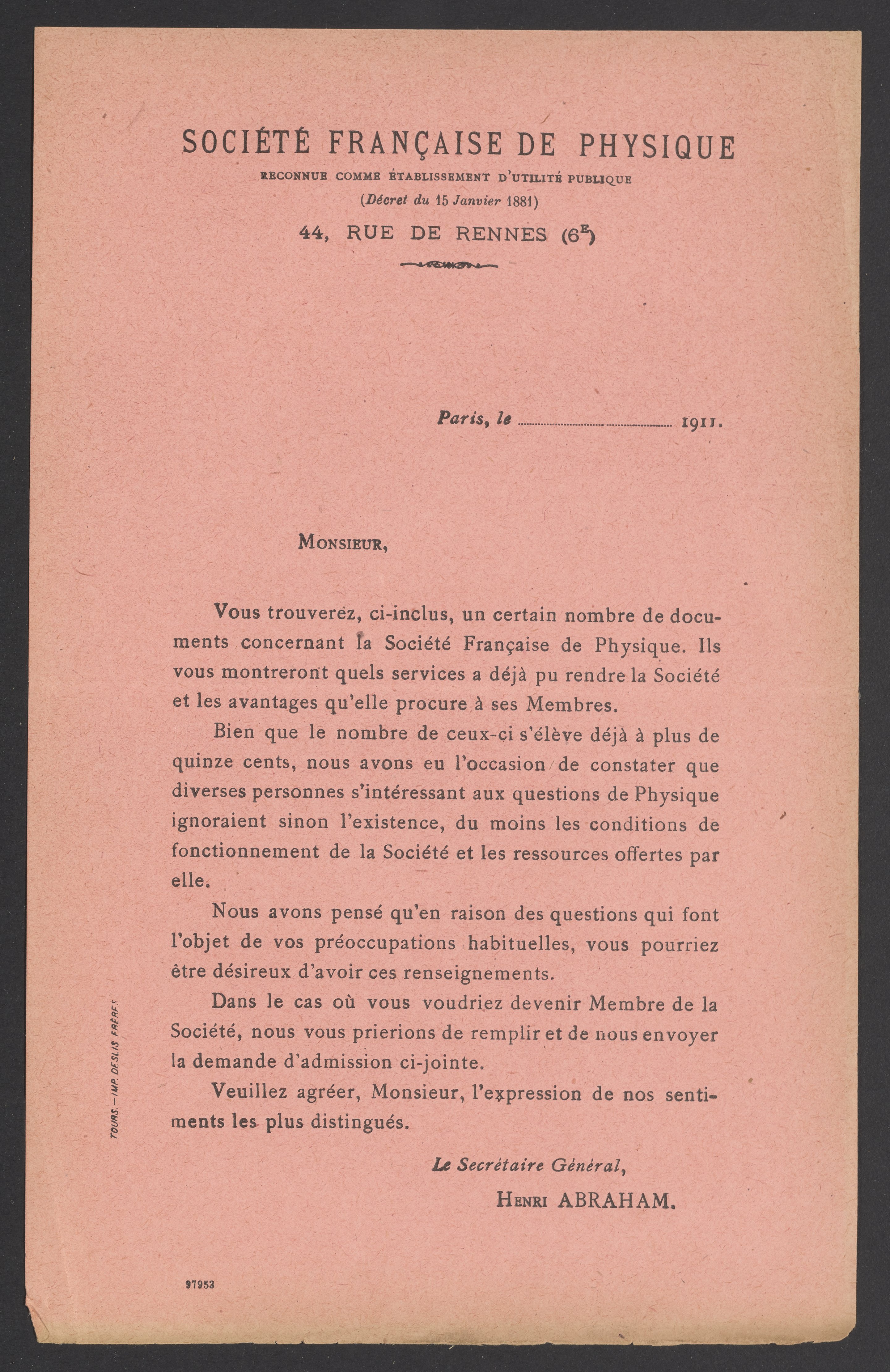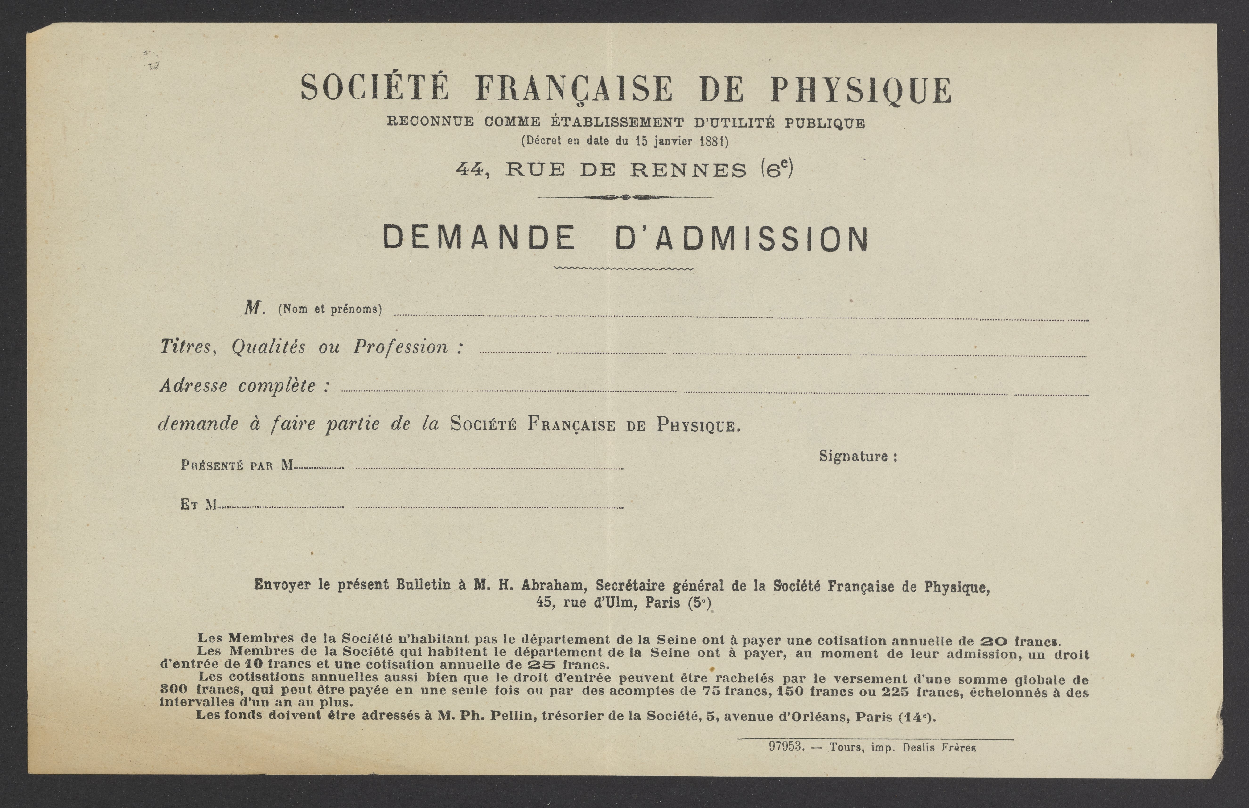 Small JPG1200 x 777px — 138 KBLarge JPG2880 x 1864px — 731 KBFull-sized JPG5300 x 3430px — 2.2 MBOriginal fileTIFF — 5300 x 3430px — 52.1 MBOrder forms for publications by the Société Française de Physique collected by Georg Bredig (1868-1944). The French Physical Society was founded in 1873.