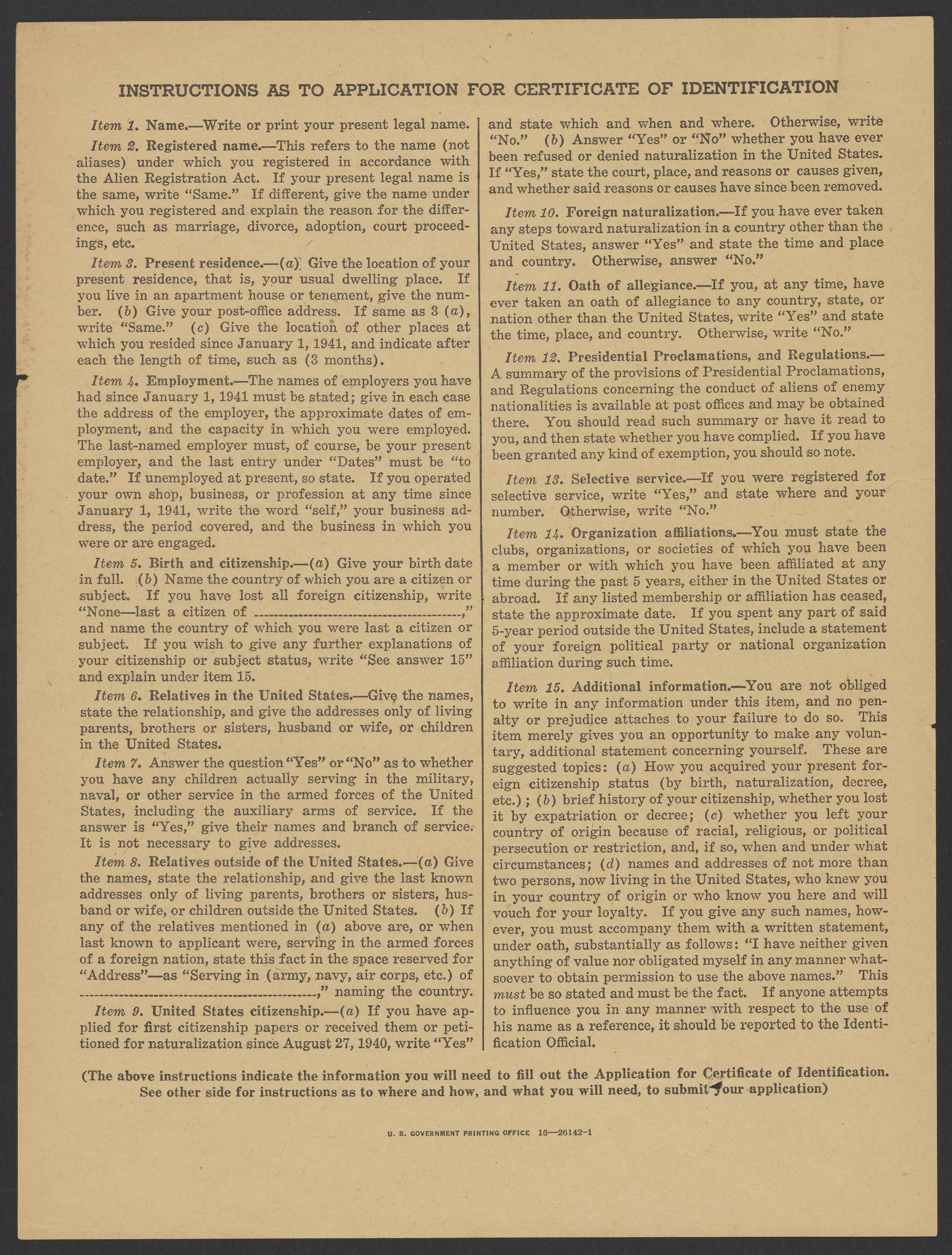 United States Department of Justice Notice to Aliens of Enemy Nationalities