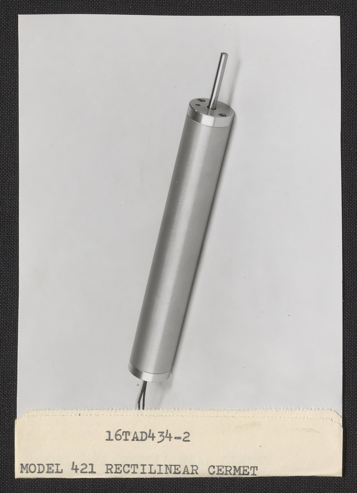 Dietrich, T. A. “Helipot Model 421 Rectilinear Cermet Potentiometer,” 1950–1969. Beckman Historical Collection, Box 86. Science History Institute. Philadelphia. https://digital.sciencehistory.org/works/xw42n844d.