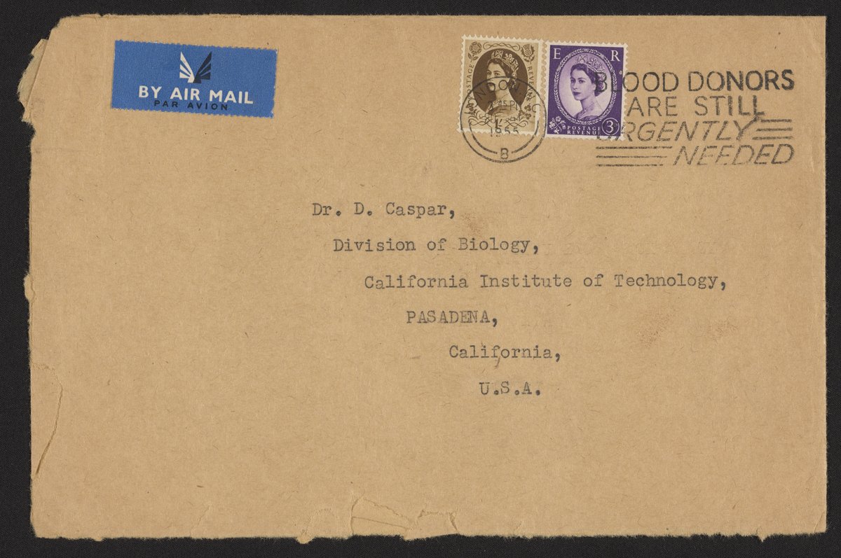 Franklin, Rosalind. “Letter from Rosalind Franklin to Donald Caspar, May 19, 1955,” May 19, 1955. History of Molecular Biology Collection, Box 7, Folder 10. Science History Institute. Philadelphia. https://digital.sciencehistory.org/works/y5ua8gp.