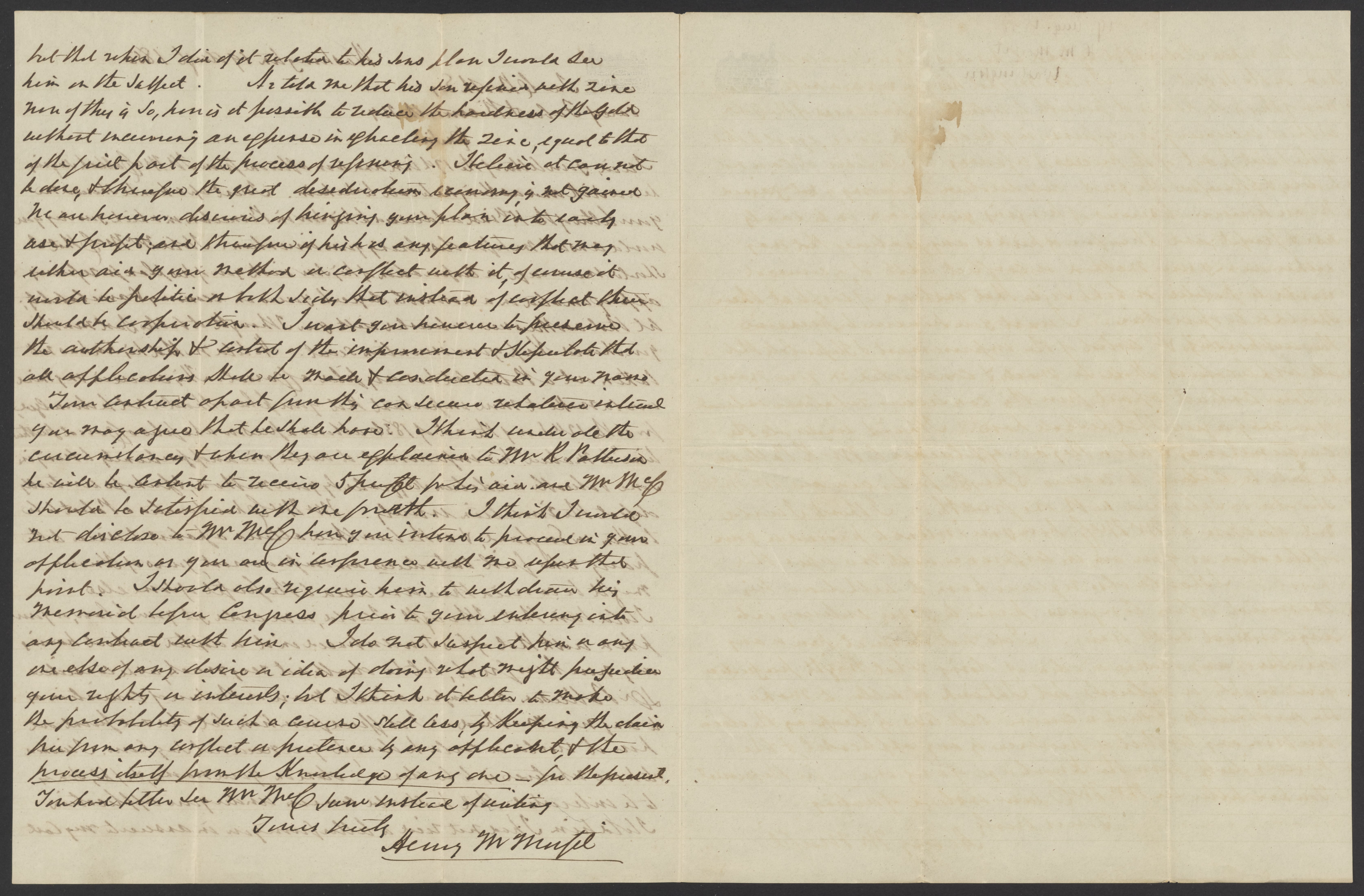 Small JPG1200 x 1552px — 395 KBLarge JPG2880 x 3724px — 1.5 MBFull-sized JPG3415 x 4416px — 1.9 MBOriginal fileTIFF — 3415 x 4416px — 43.2 MBHenry M. Morfit (1793-1865) writes more on a proposed partnership with Richard Sears McCulloch (1818-1894) in response to his letter of August 17th. Morfit urges caution and points to several drawbacks in McCulloch’s process.