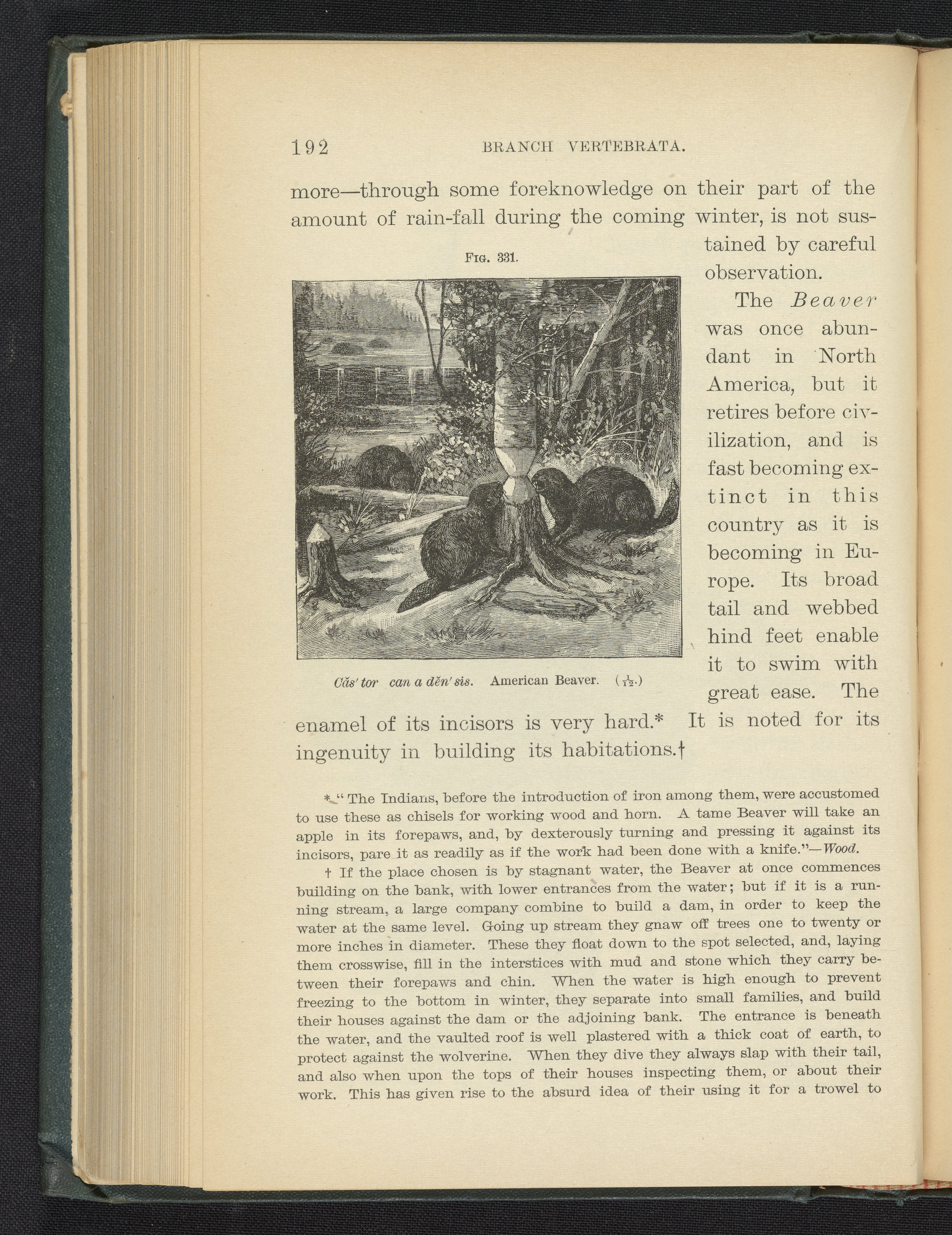 Steele, Joel Dorman, and Jenks, J. W. P. (John Whipple Potter). “Figure 331. American Beaver.” Popular Zoology. New York, New York: Chautauqua Press, 1887. https://digital.sciencehistory.org/works/y7mk0d5.