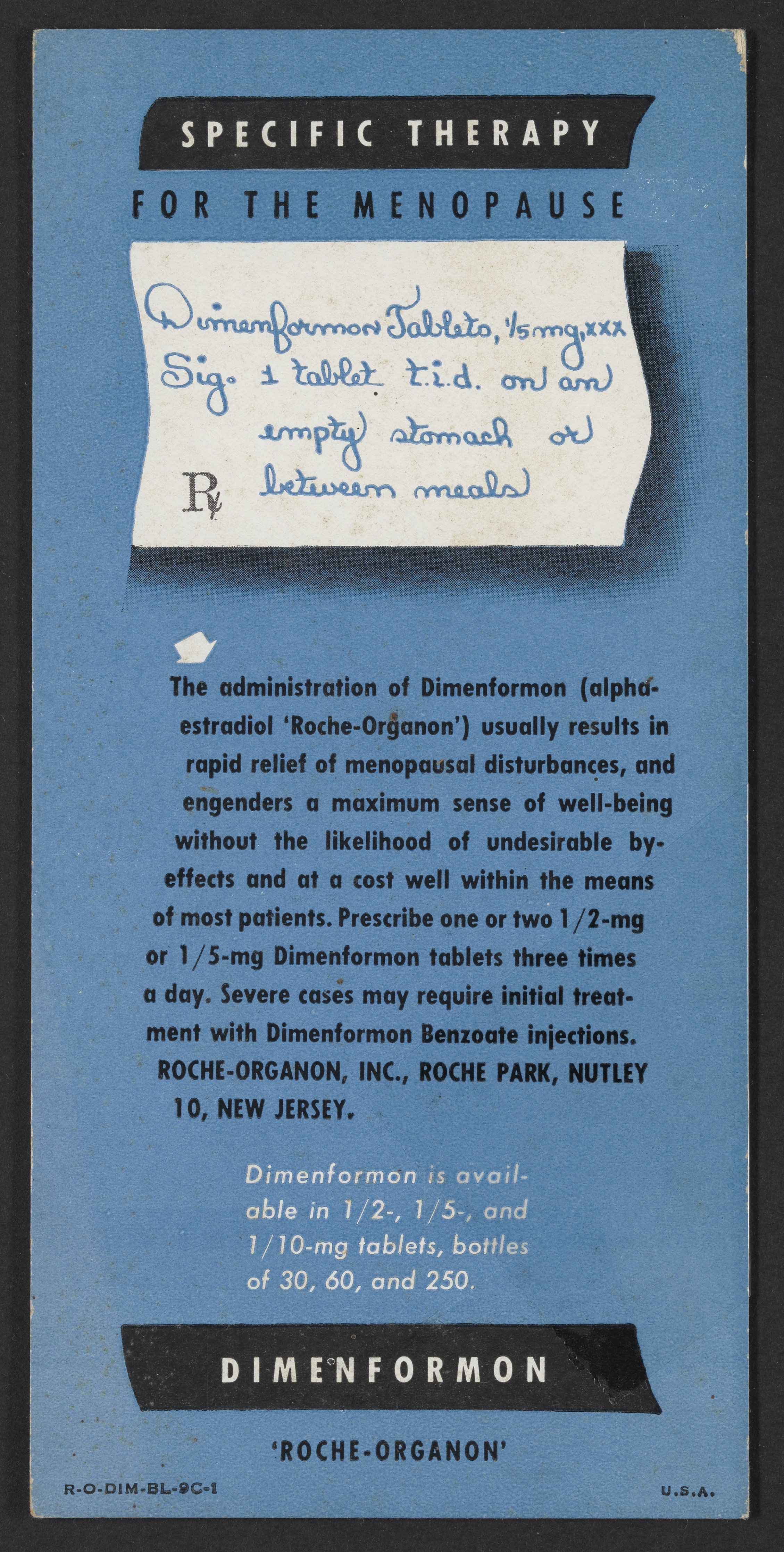 Dimenformon tablets promotional blotter
