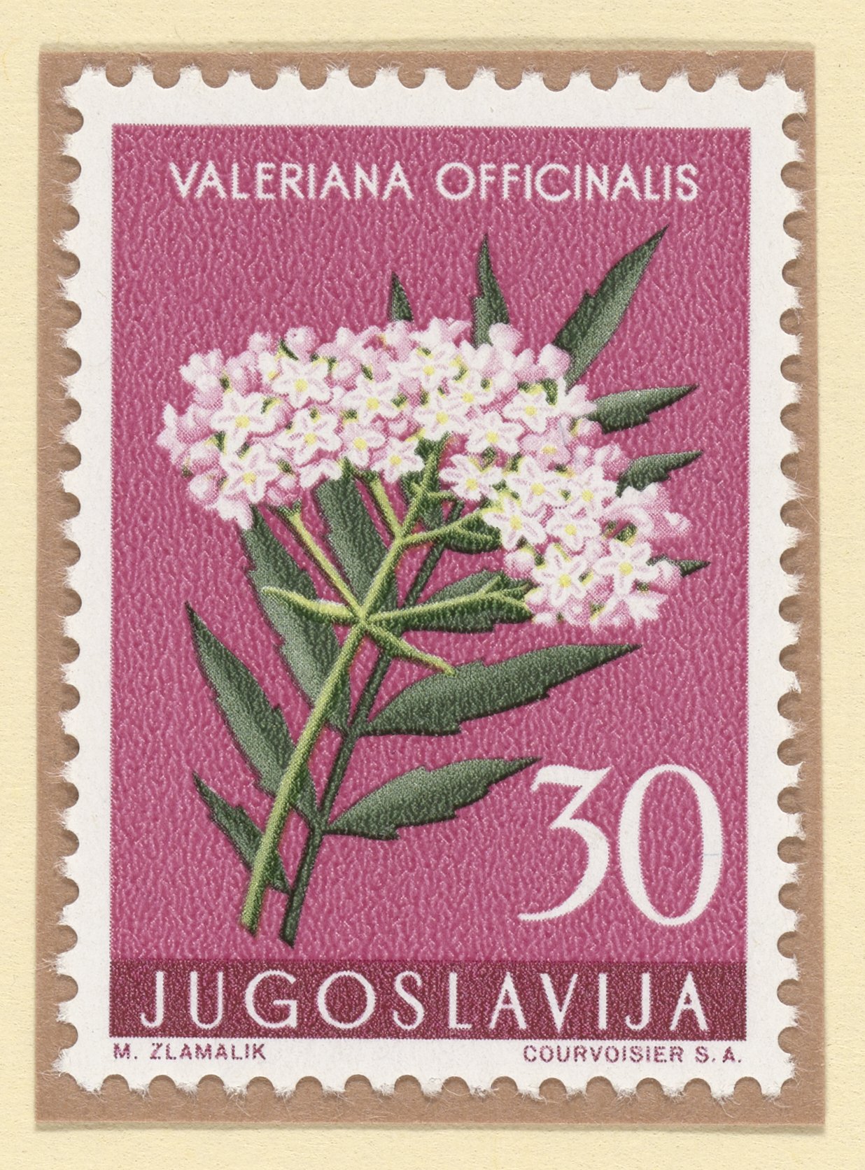 Valerian (Valeriana officinalis) postage stamp, Yugoslavia