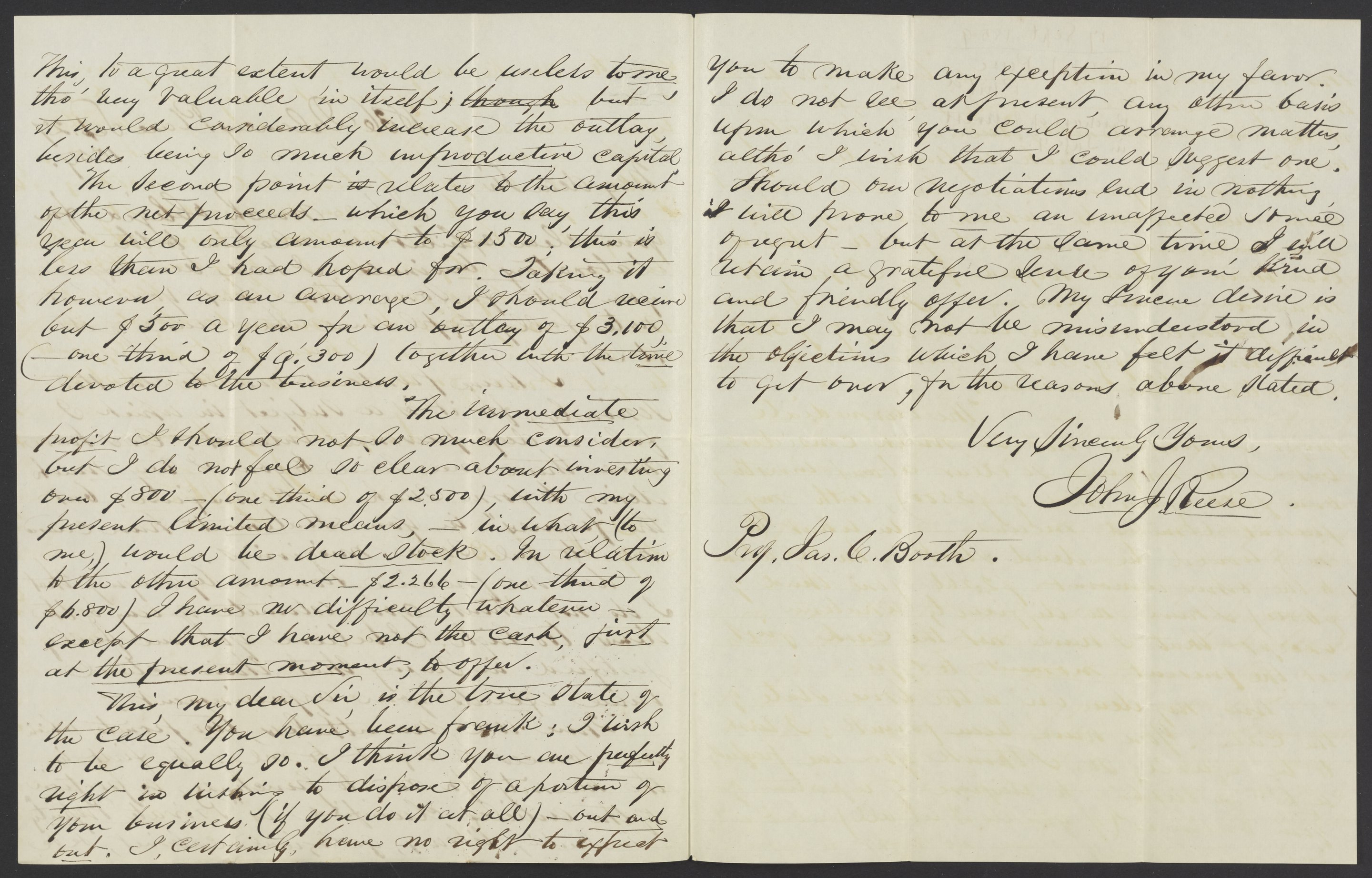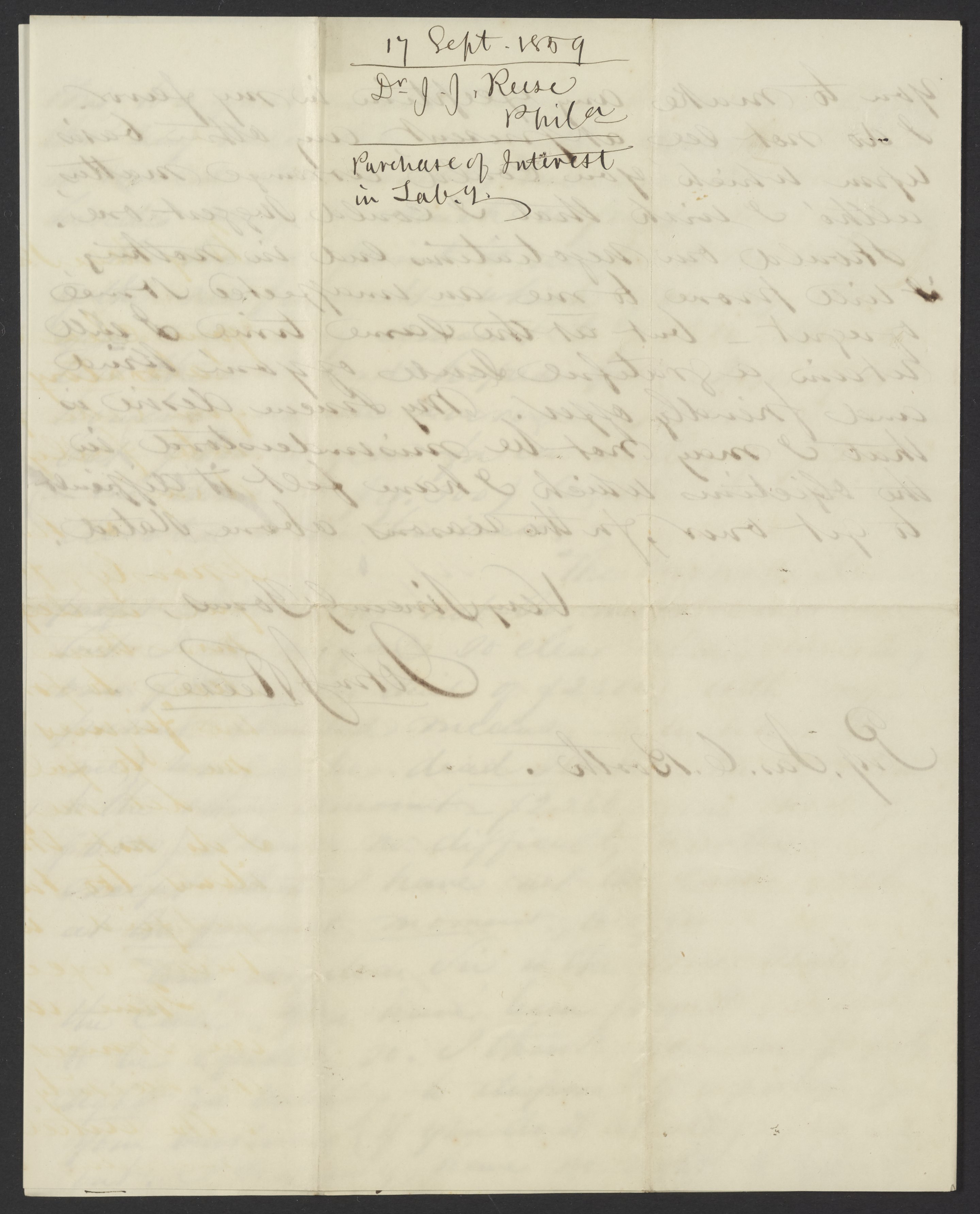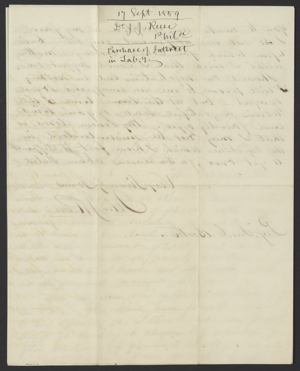 Letter from Dr. John J. Reese to James Curtis Booth, September 17, 1859