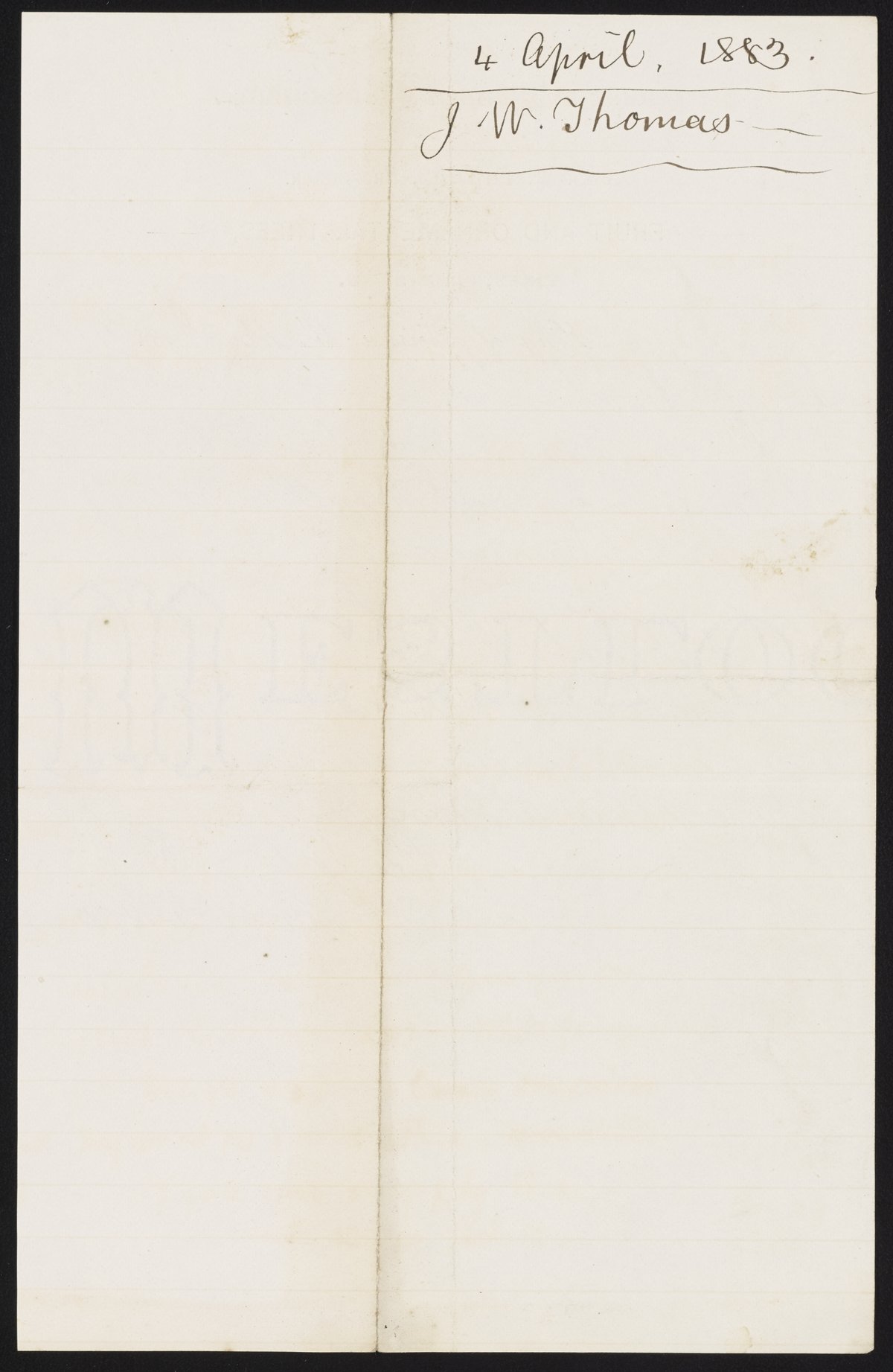 Letter from J.W. Thomas to James Curtis Booth, April 3, 1883