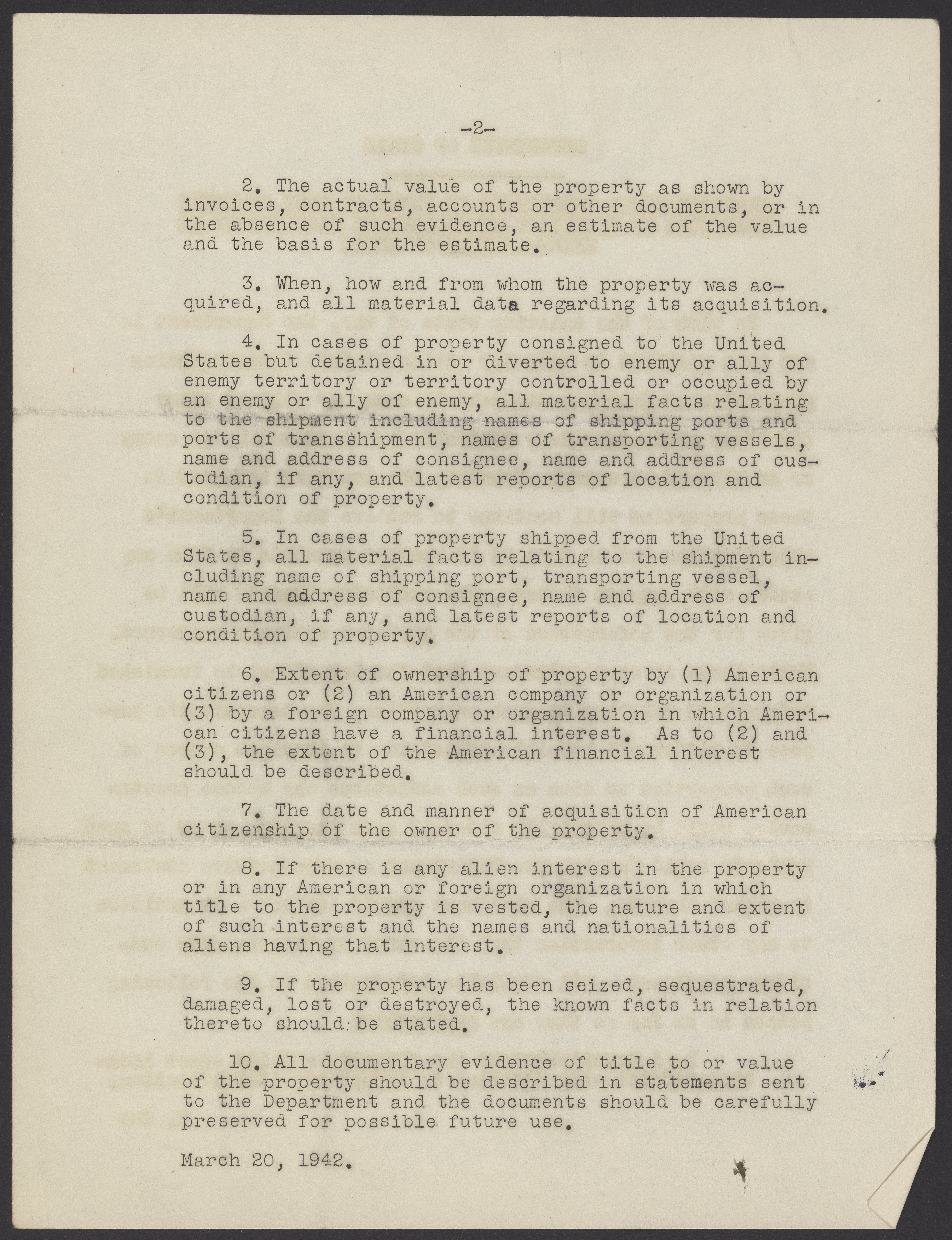 American-Owned Properties in Enemy or Ally of Enemy Territory or Territory Controlled or Occupied by an Enemy or Ally of Enemy
