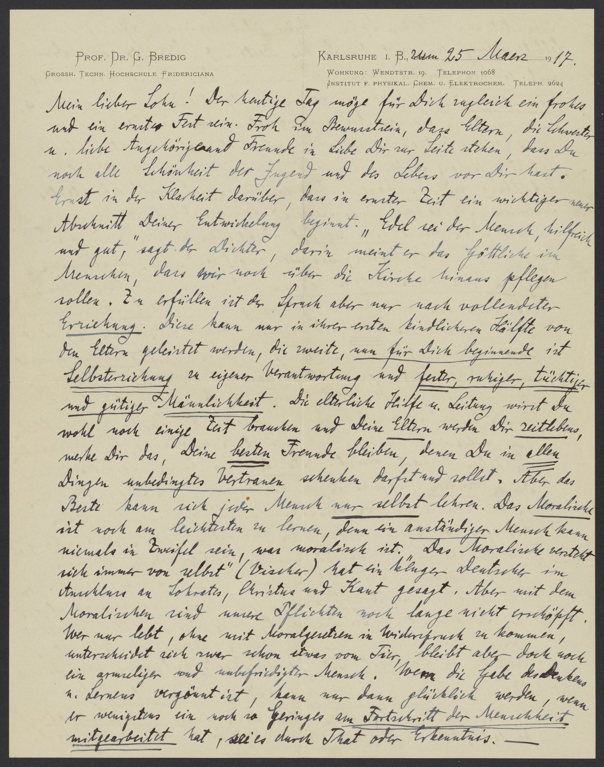 Letter from Georg Bredig to Max Bredig, March 25, 1917