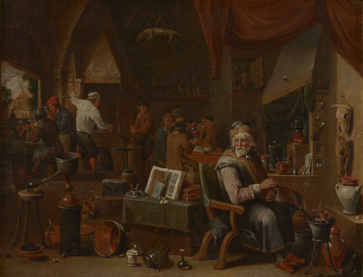 An Alchemist's Laboratory. Oil paint (paint), canvas (textile material), 1700–1799. Science History Institute. Philadelphia. https://digital.sciencehistory.org/works/z029p5724.
