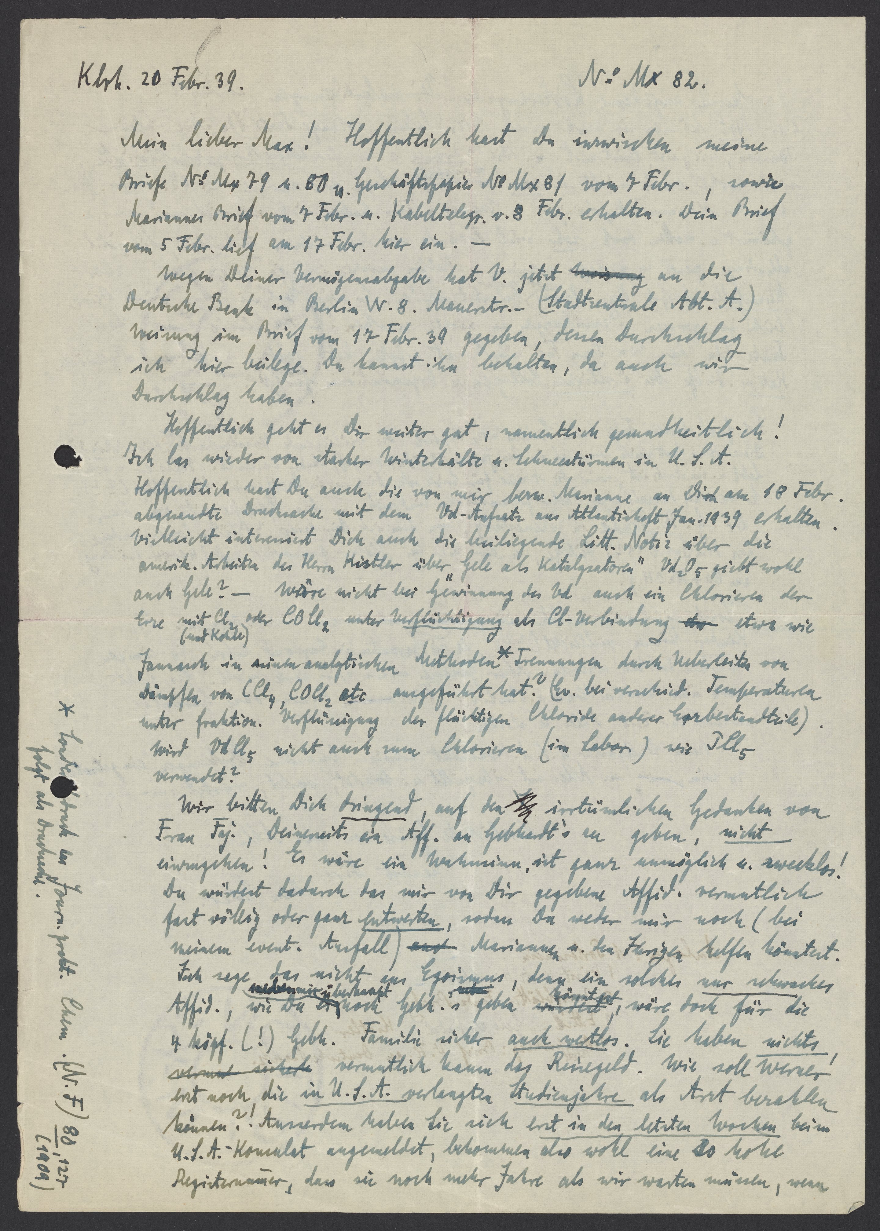 Letter from Georg Bredig to Max Bredig, February 20, 1939