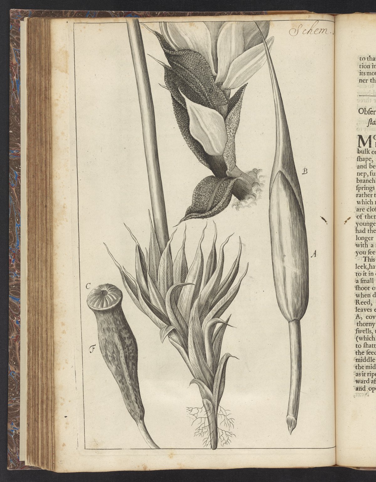 Engravings from Schem. 13 of the first edition of Robert Hooke's seminal volume, Micrographia : or, Some physiological descriptions of minute bodies made by magnifying glasses. With observations and inquiries thereupon. Depicted here are moss and an assortment of other small vegetative substances that are the subject of Hooke's experiments in Observ. XXI.
