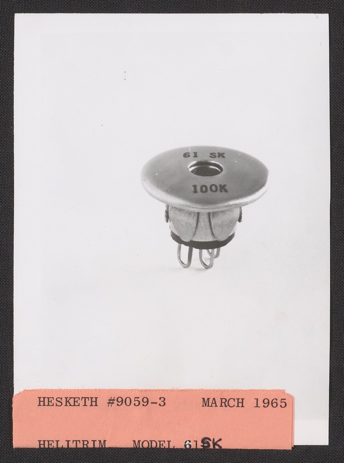 Hesketh, Dean D. “Beckman Model 61SK Helitrim Trimming Potentiometer,” March 1965. Beckman Historical Collection, Box 85. Science History Institute. Philadelphia. https://digital.sciencehistory.org/works/z603qx859.