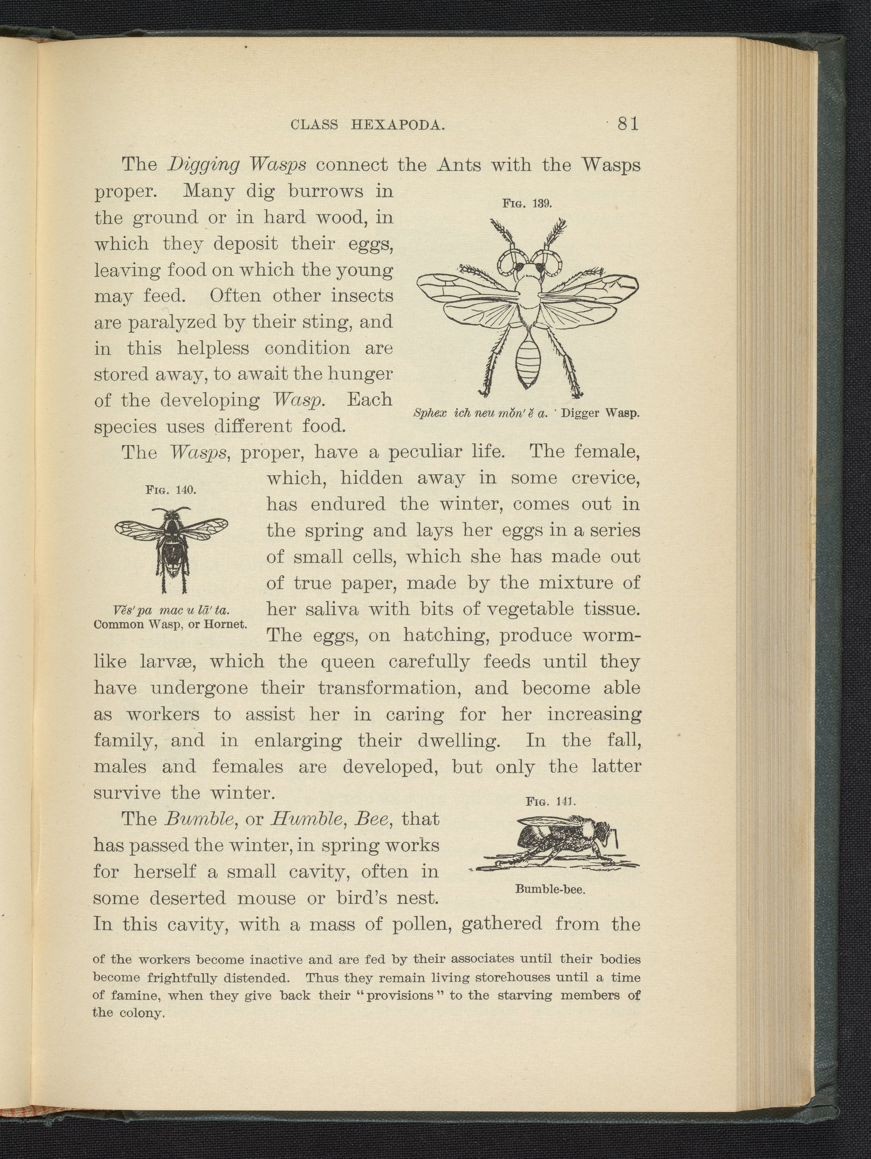 Figure 139. Digger Wasp. Figure 140. Common Wasp, or Hornet. Figure 141. Bumble-bee