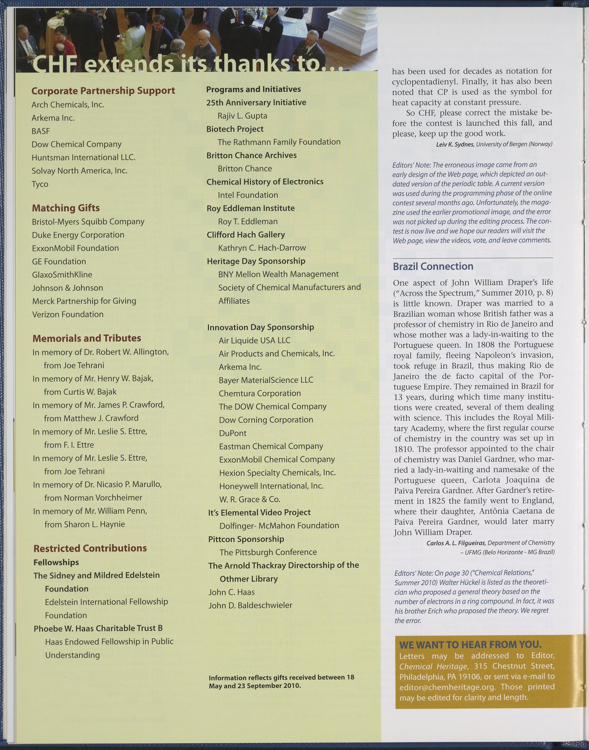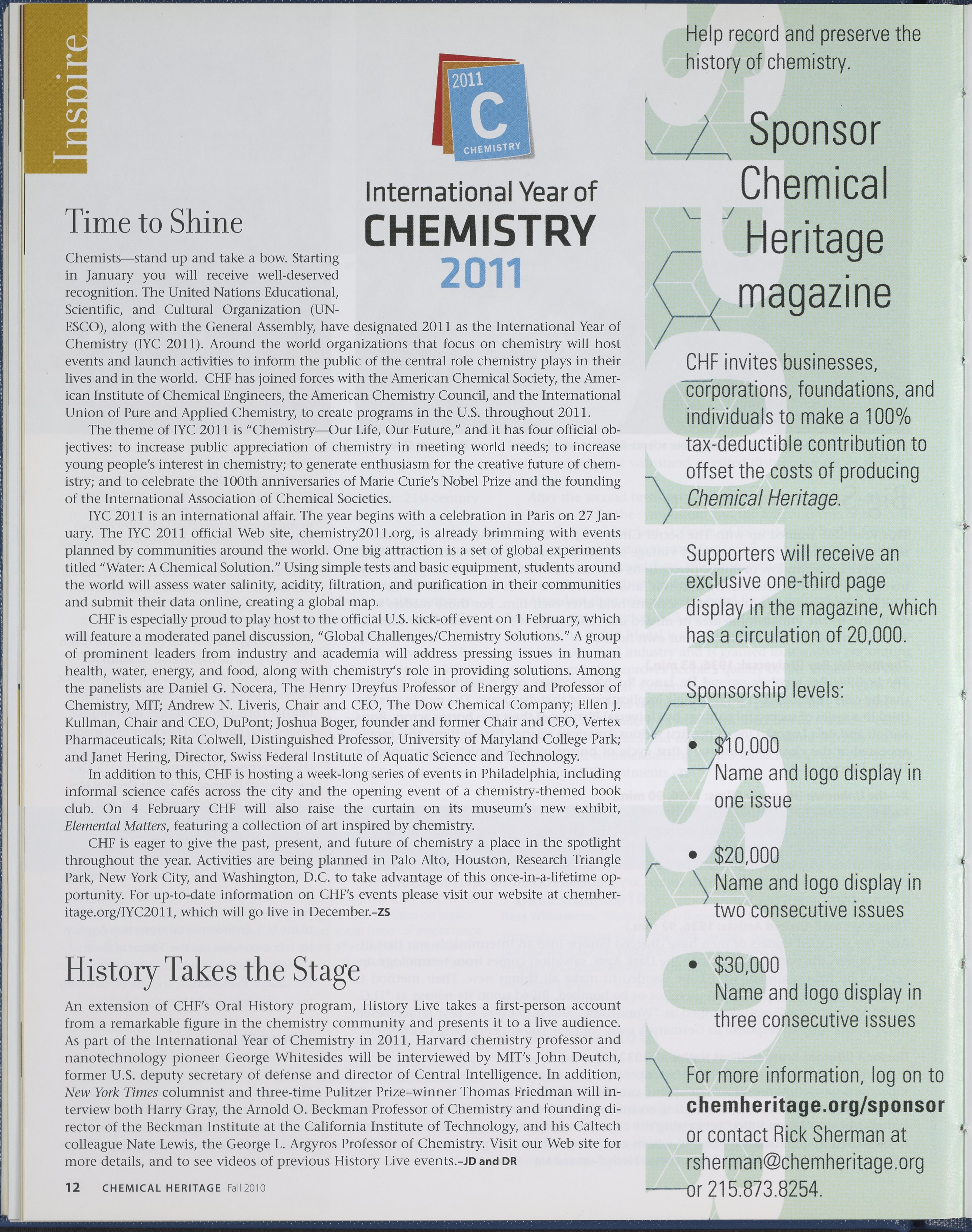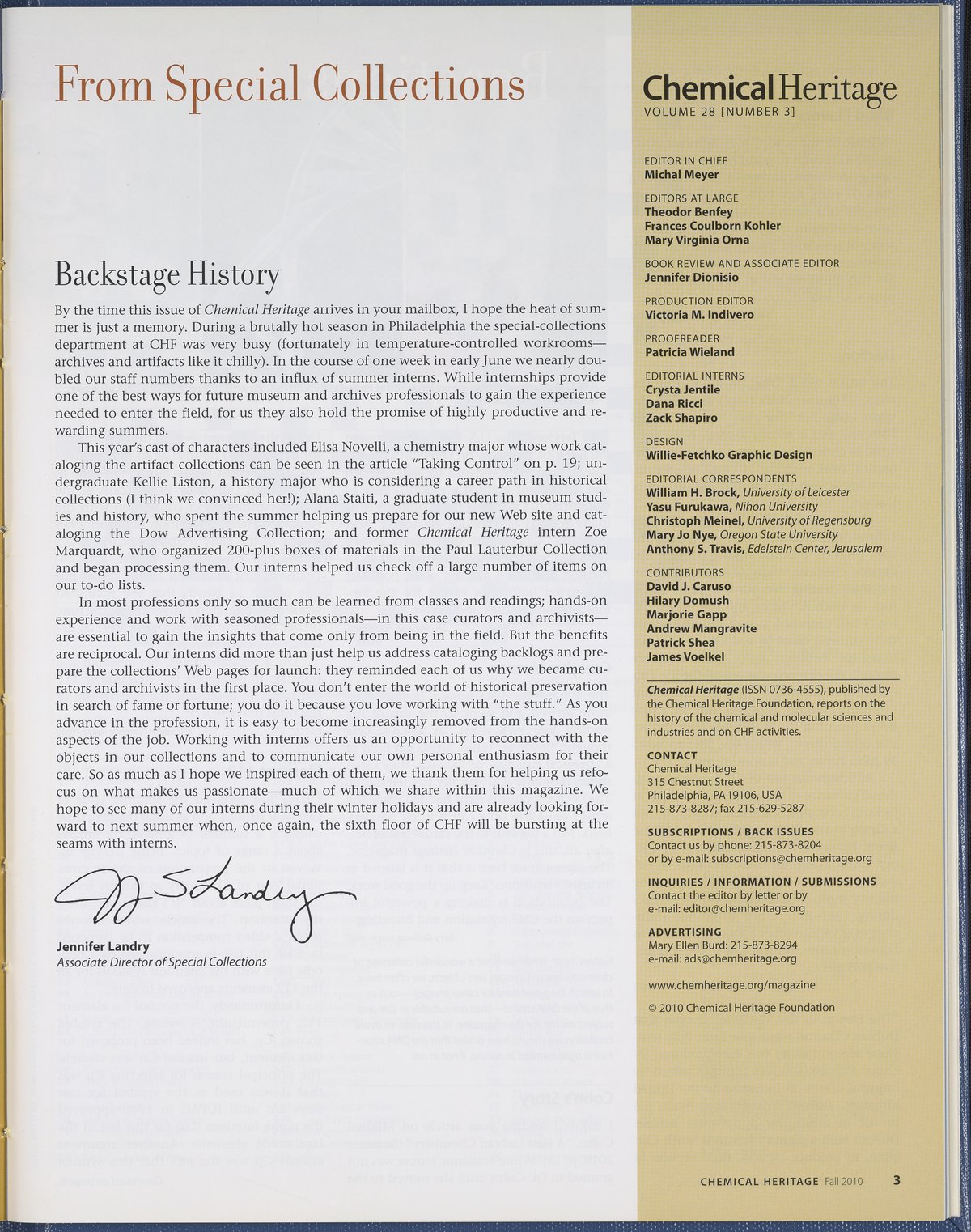 Chemical Heritage, Volume 28 Number 3