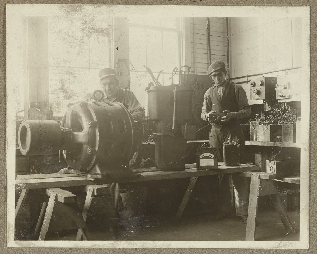 “Employees at Work in Fixed Nitrogen Research Laboratory Electrical Shop ,” circa 1928. Travis P. Hignett Collection of Fixed Nitrogen Research Laboratory Photographs, Box 1. Science History Institute. Philadelphia. https://digital.sciencehistory.org/works/zc77sq206.