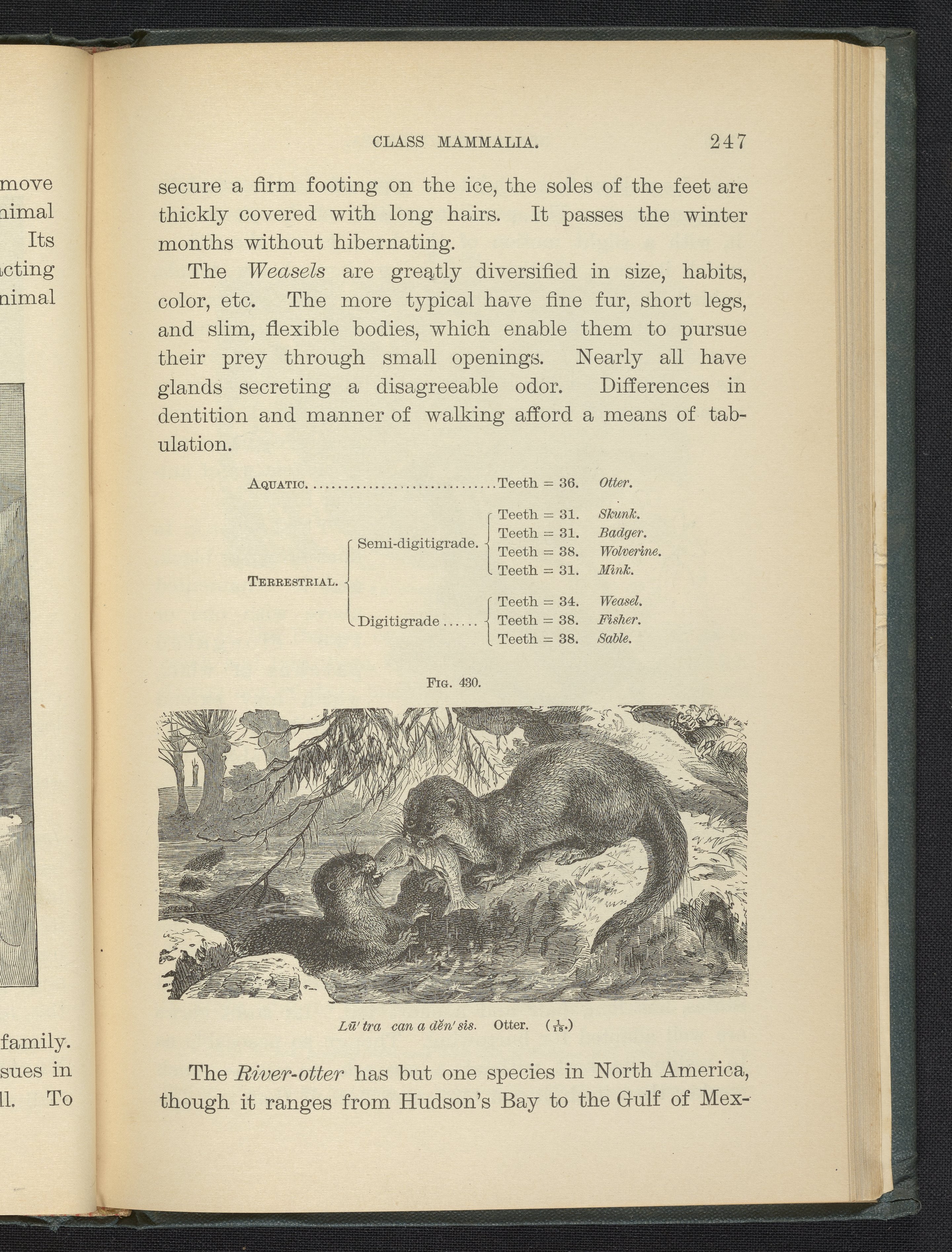 Steele, Joel Dorman, and Jenks, J. W. P. (John Whipple Potter). “Figure 430. Otters.” Popular Zoology. New York, New York: Chautauqua Press, 1887. https://digital.sciencehistory.org/works/zdltm1p.