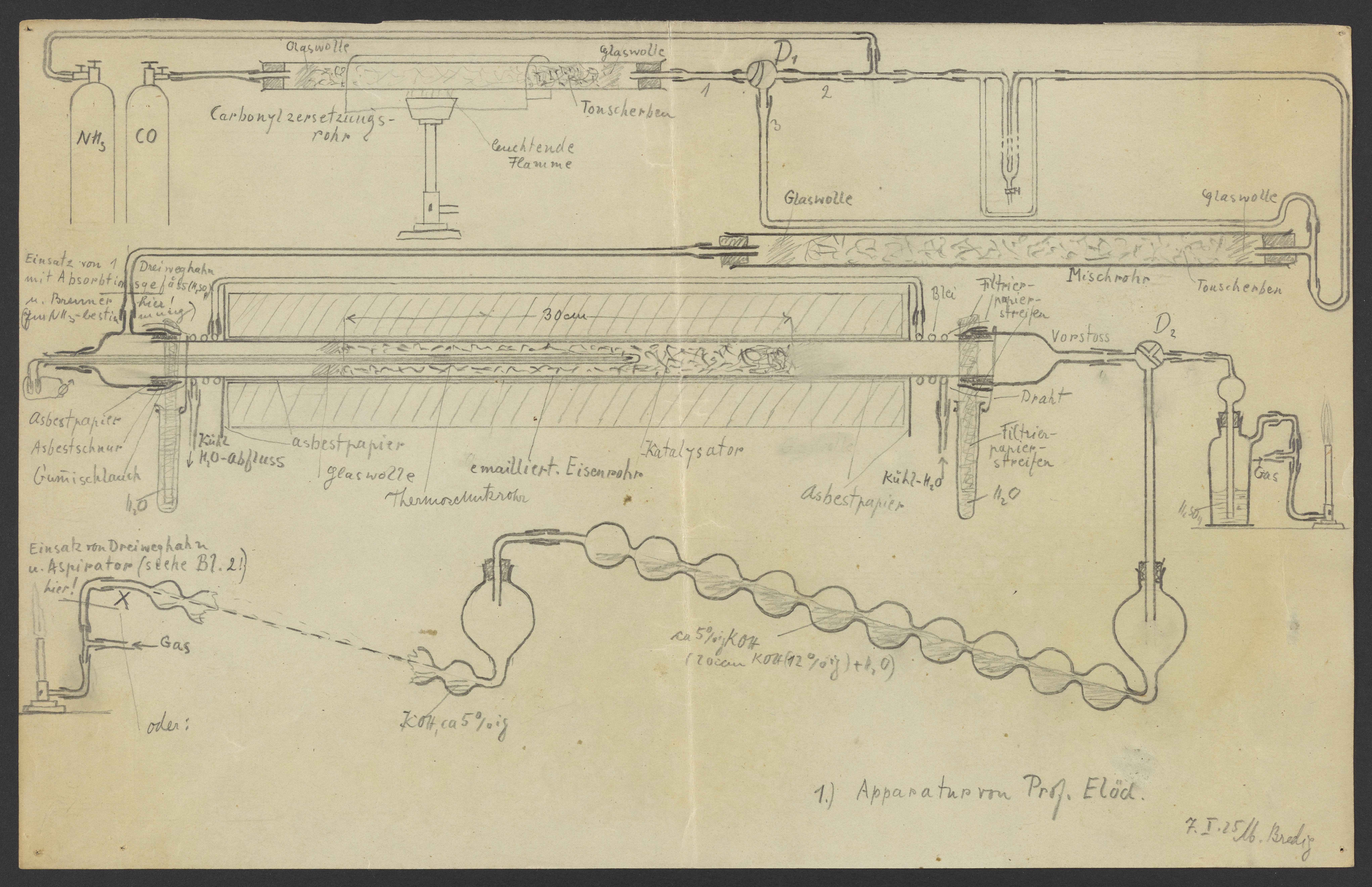 Bredig, Max Albert. “Diagram of an Apparatus According to Professor Elod,” January 7, 1925. Papers of Georg and Max Bredig, Box 5, Folder 5. Science History Institute. Philadelphia. https://digital.sciencehistory.org/works/ze2k3e7.