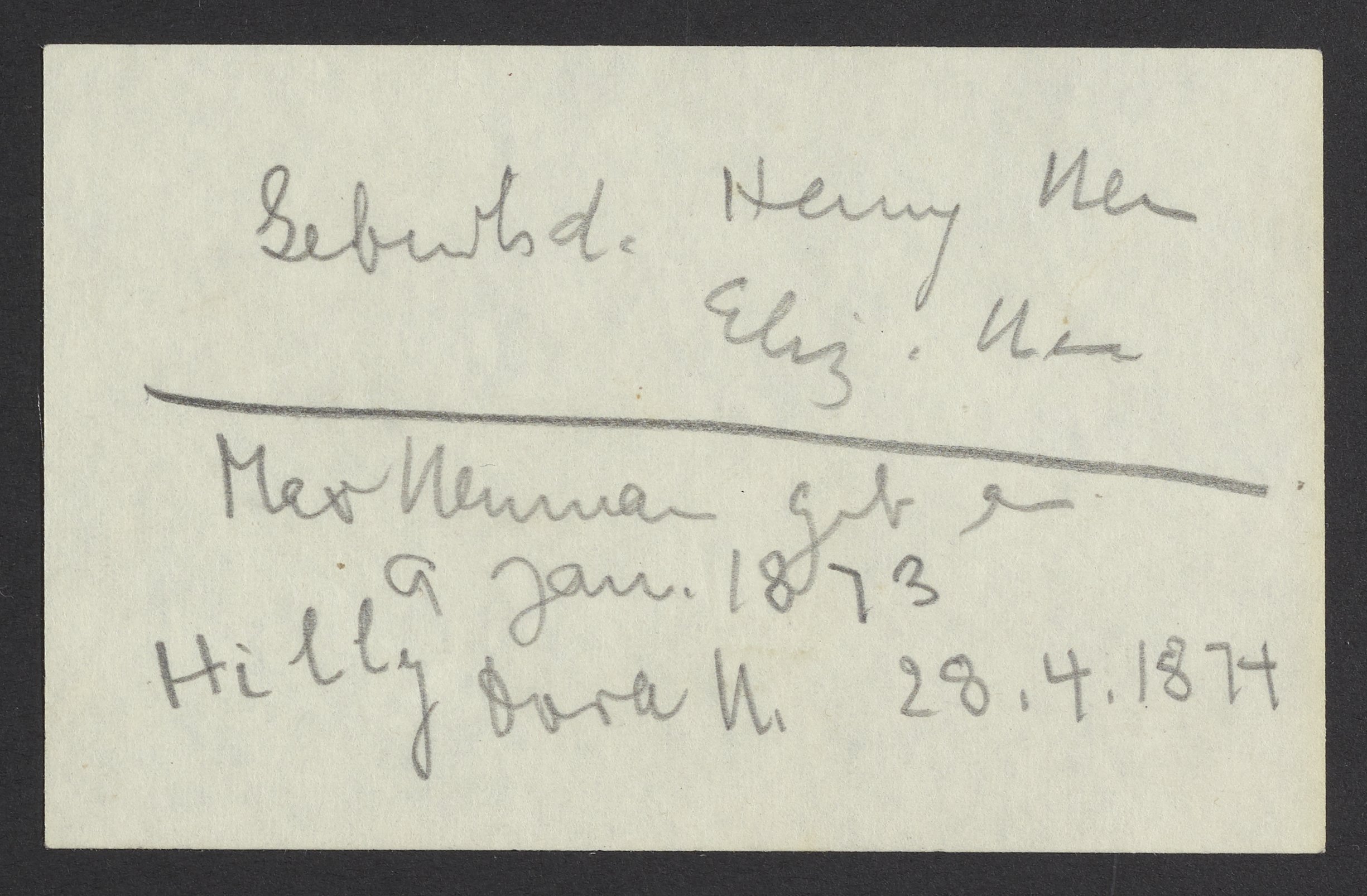 Small JPG1200 x 788px — 154 KBFull-sized JPG2445 x 1605px — 608 KBOriginal fileTIFF — 2445 x 1605px — 11.3 MBAssortment of handwritten notes containing dates and names associated with family and friends abroad whom Max Bredig (1868-1902) is attempting to aid in immigration to the United States.