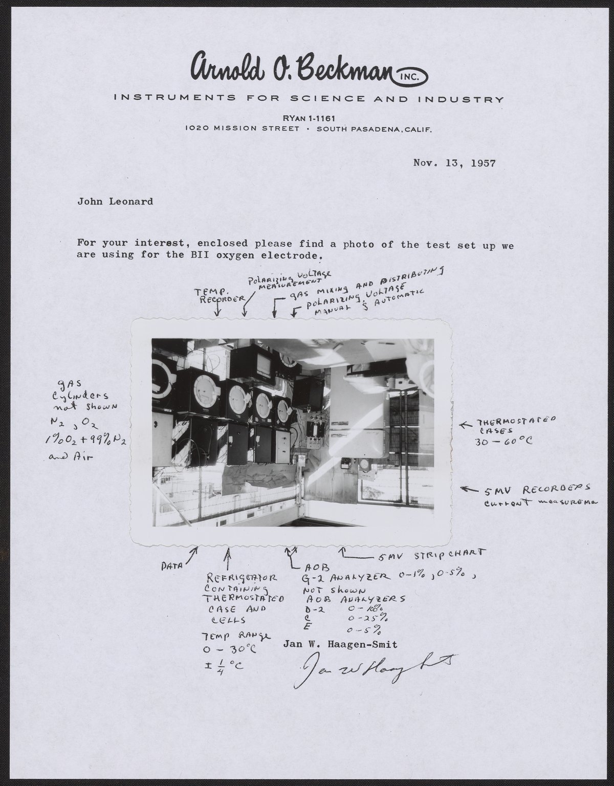 Memo from Jan W. Haagen-Smit to John Leonard