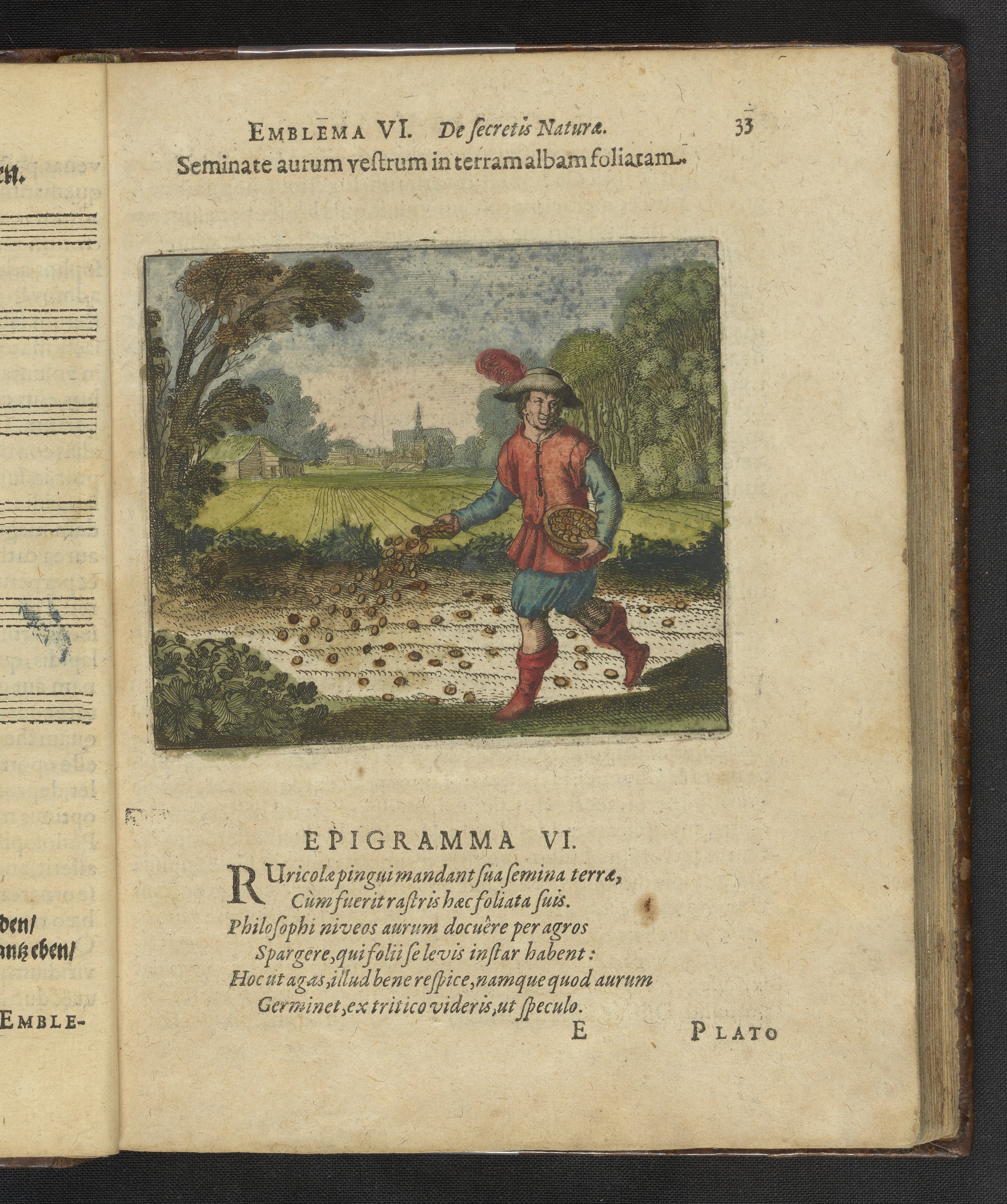Emblema VI. Seminate aurum vestrum in terram albam foliatam.
