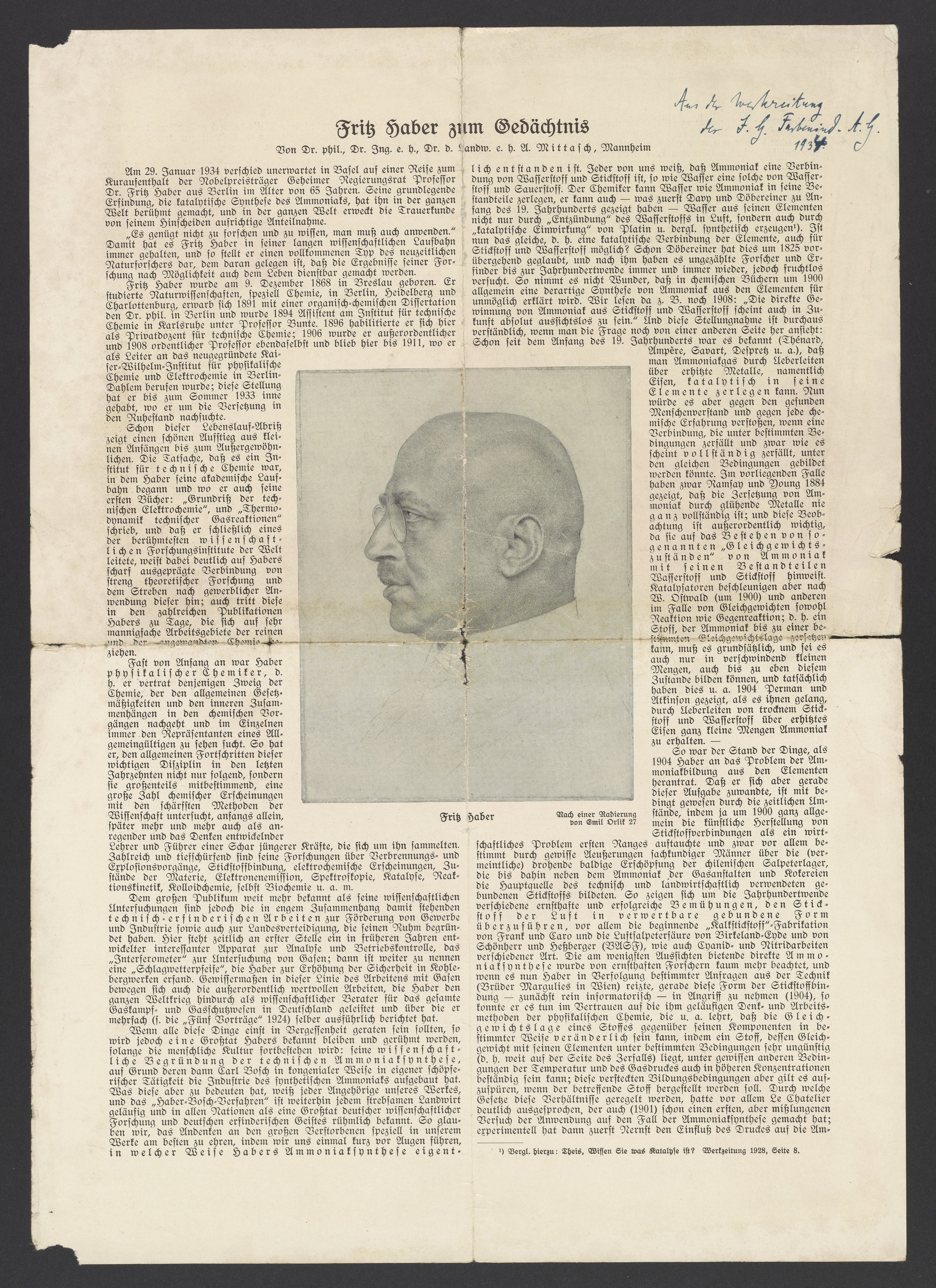 • Fritz Haber in Memory