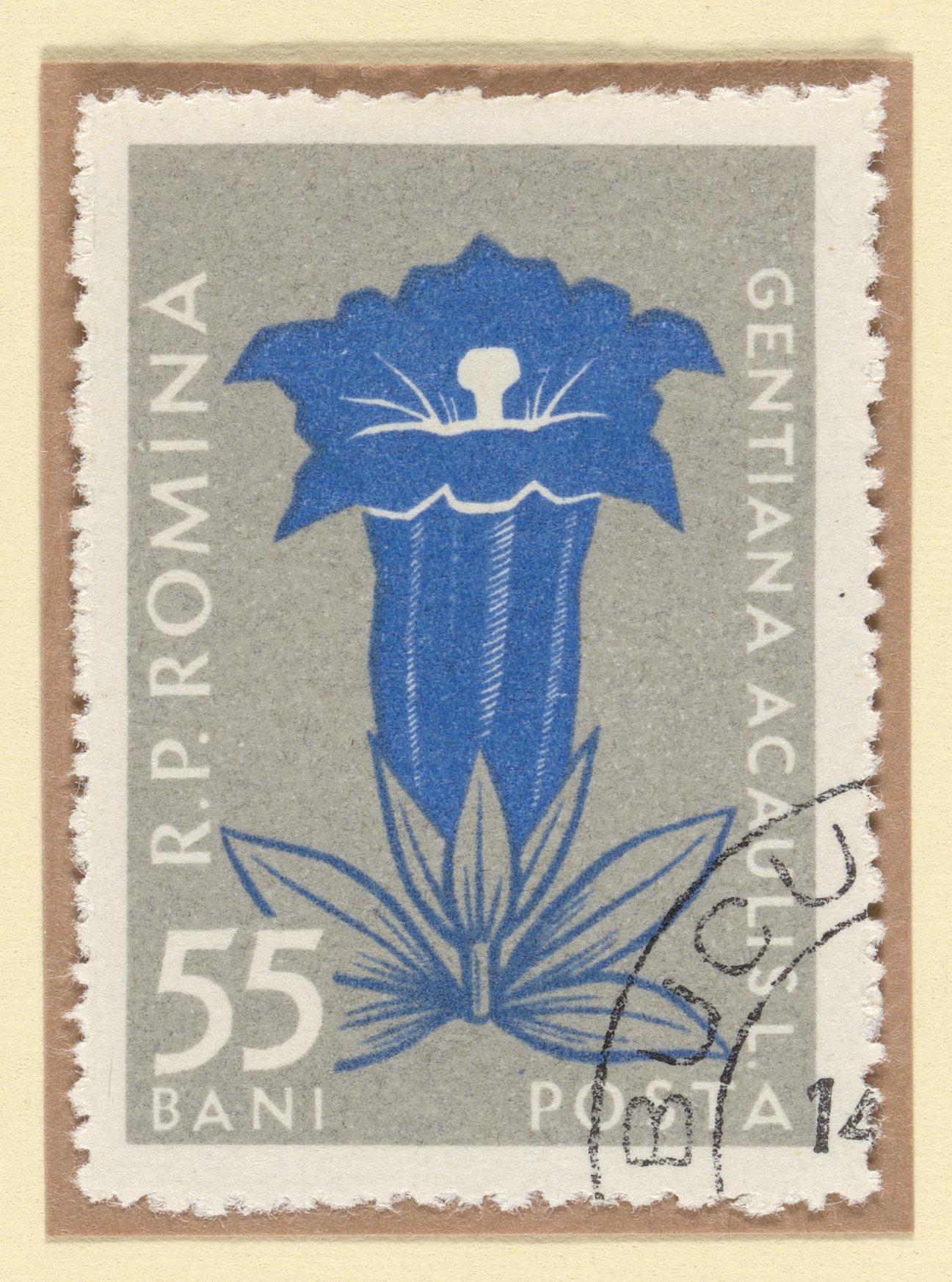 Gentian (Gentiana acaulis) postage stamp, Romania