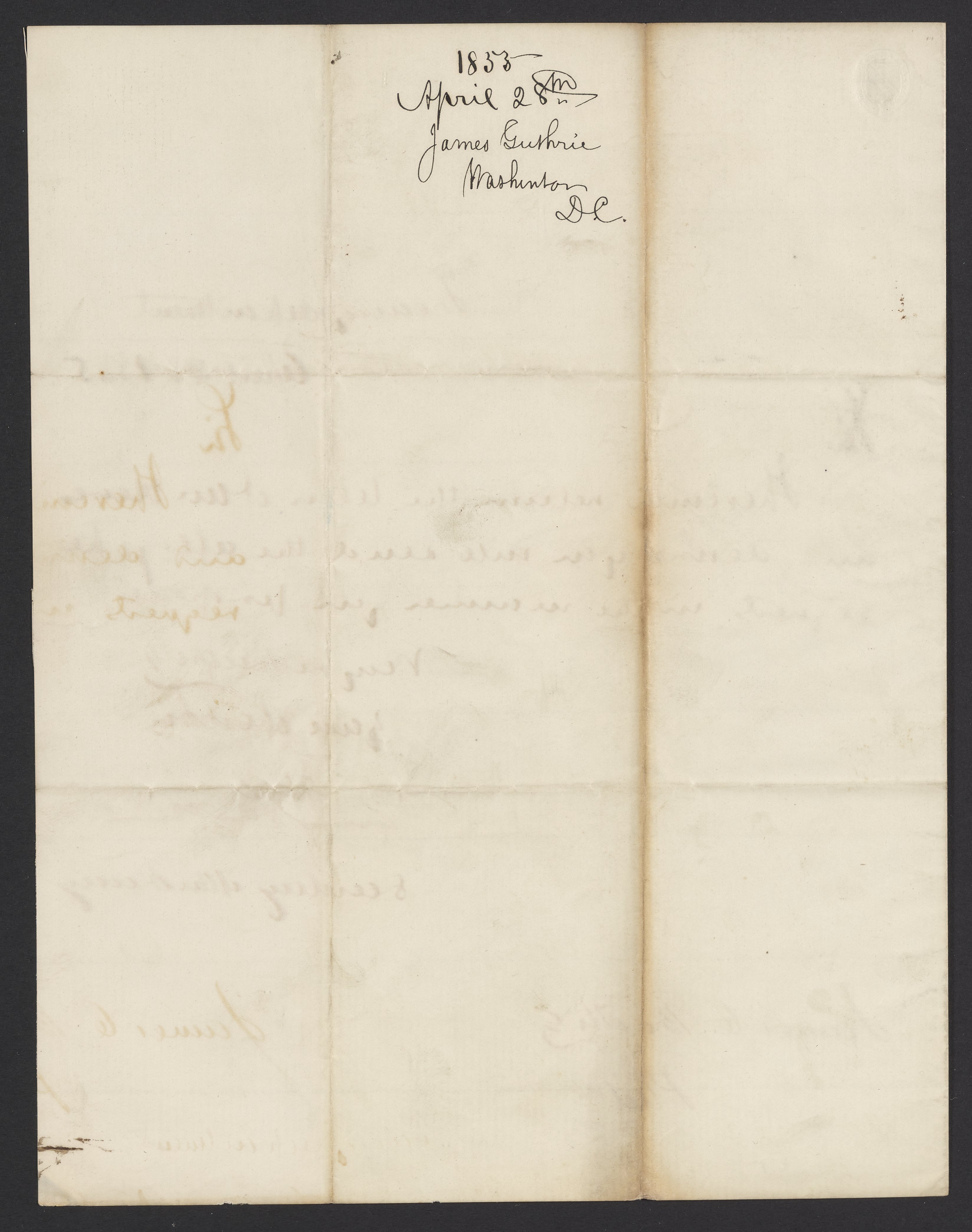 Letter from James B. Guthrie to James Curtis Booth, April 28, 1855
