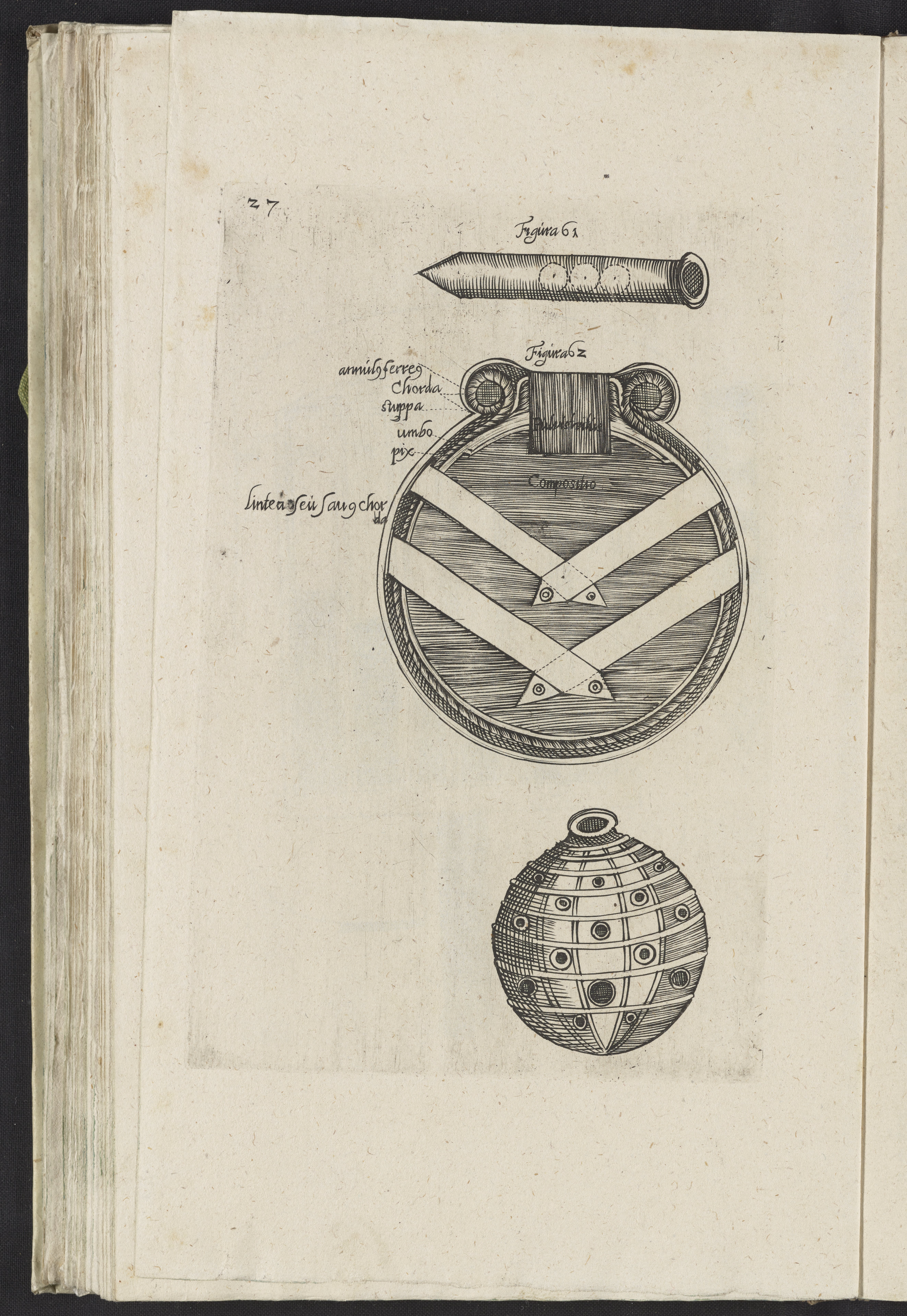 Brawe, Hermann. “Plate 27: Stormball and Its Parts.” In Vollenkommene Unterweisung, Wie Raketen, Feuer- Wasser- Sturm-Kugeln, Granaten, Pech-Sturm-Kräntze, Und Allerhand Lust Und Ernsthaffte Feuer-Wercke Zubereiten. Osnabrück, Germany: Johann Georg Schwänder, 1660. https://digital.sciencehistory.org/works/zs25x844t.