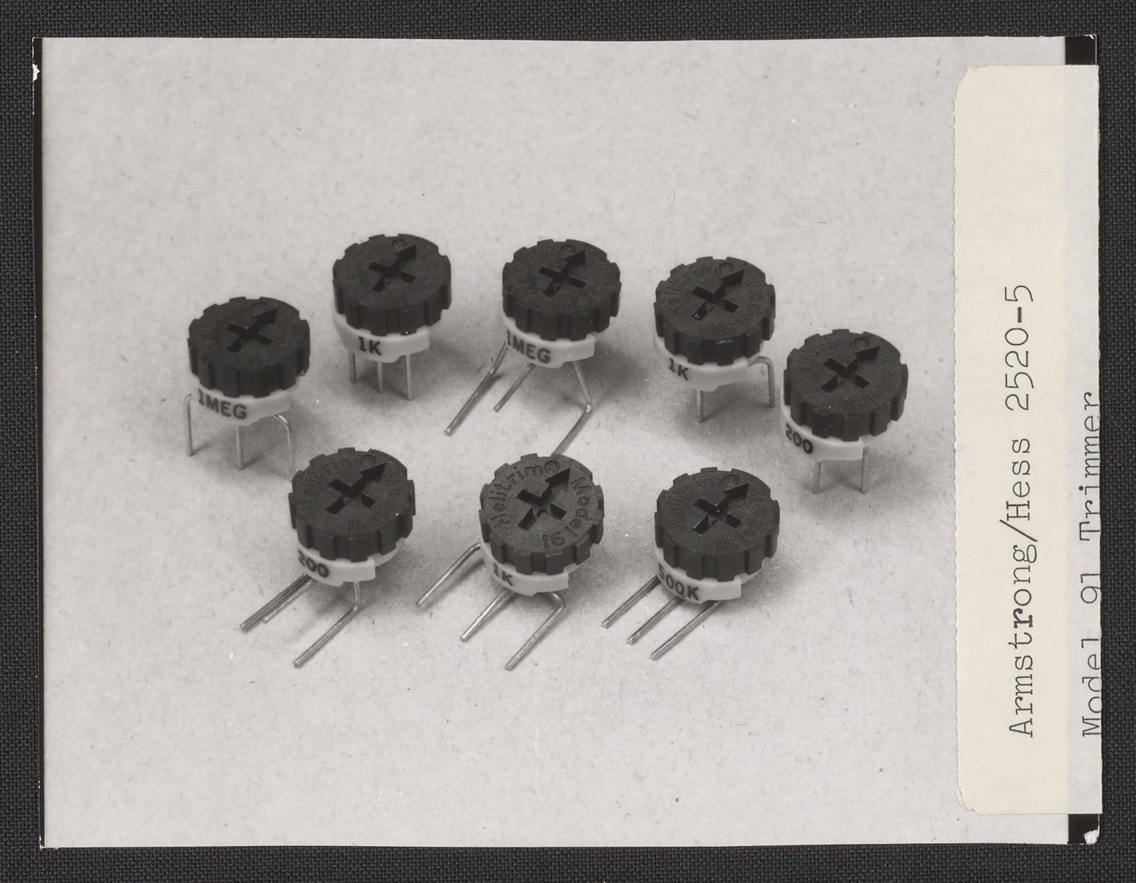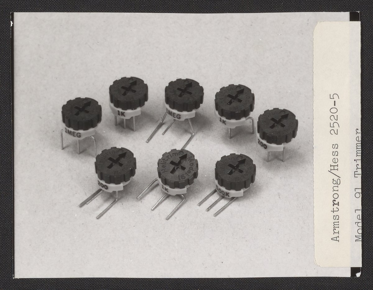 Armstrong & Hess. “Helitrim Model 91 Trimmer Potentiometers,” 1950–1969. Beckman Historical Collection, Box 85. Science History Institute. Philadelphia. https://digital.sciencehistory.org/works/zs25x878n.