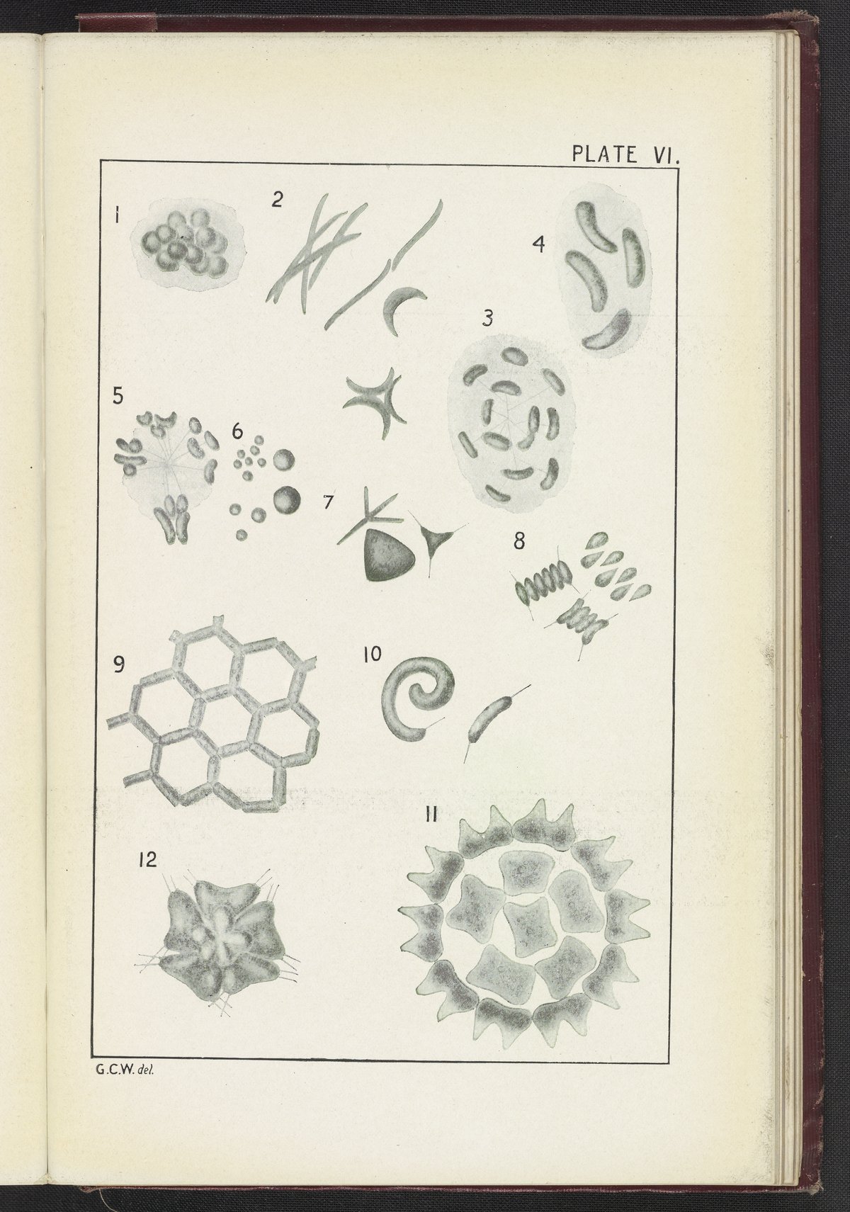 Whipple, George Chandler. “Plate VI: Chlorophyceæ.” The Microscopy of Drinking Water, 1914. https://digital.sciencehistory.org/works/zs25x934s.