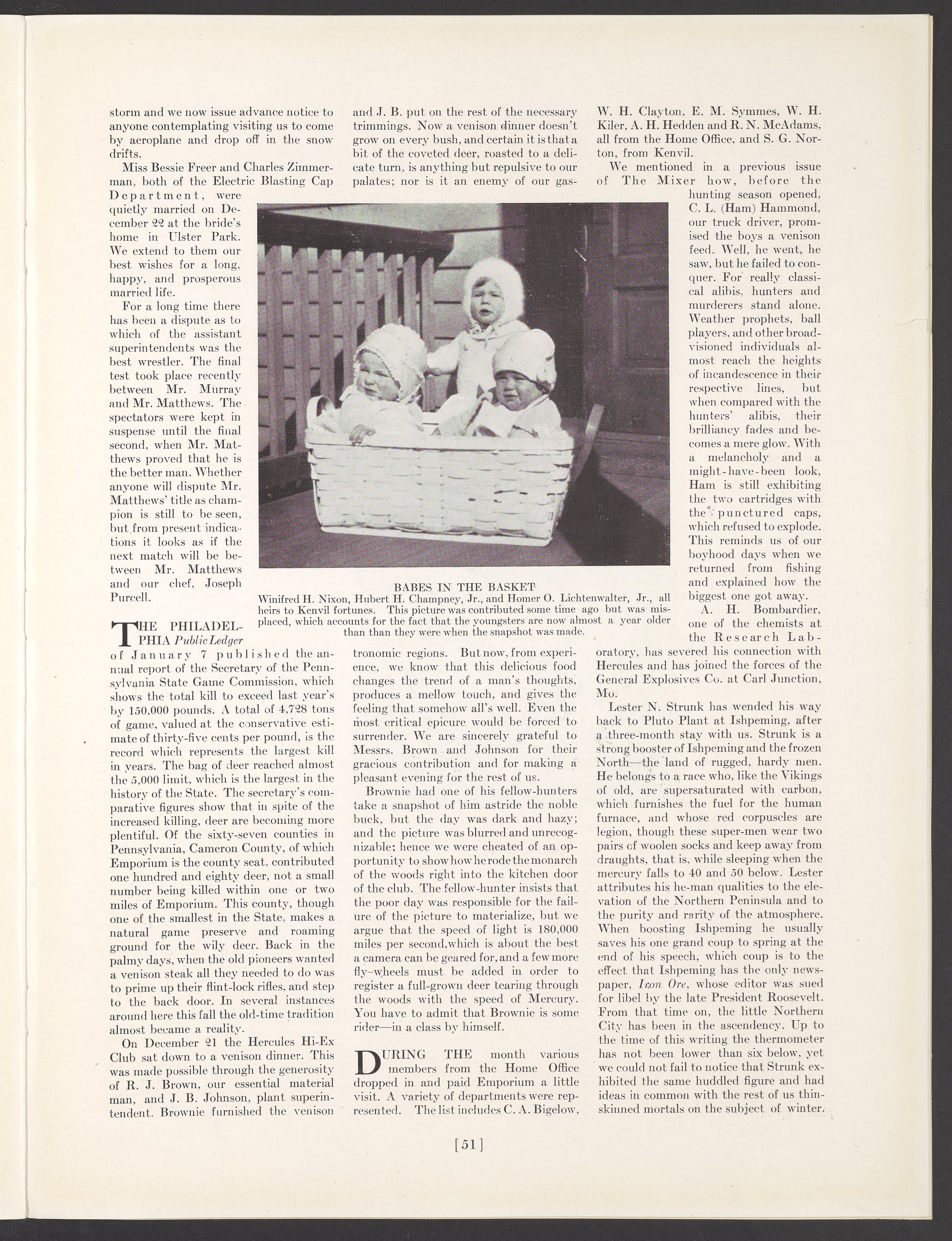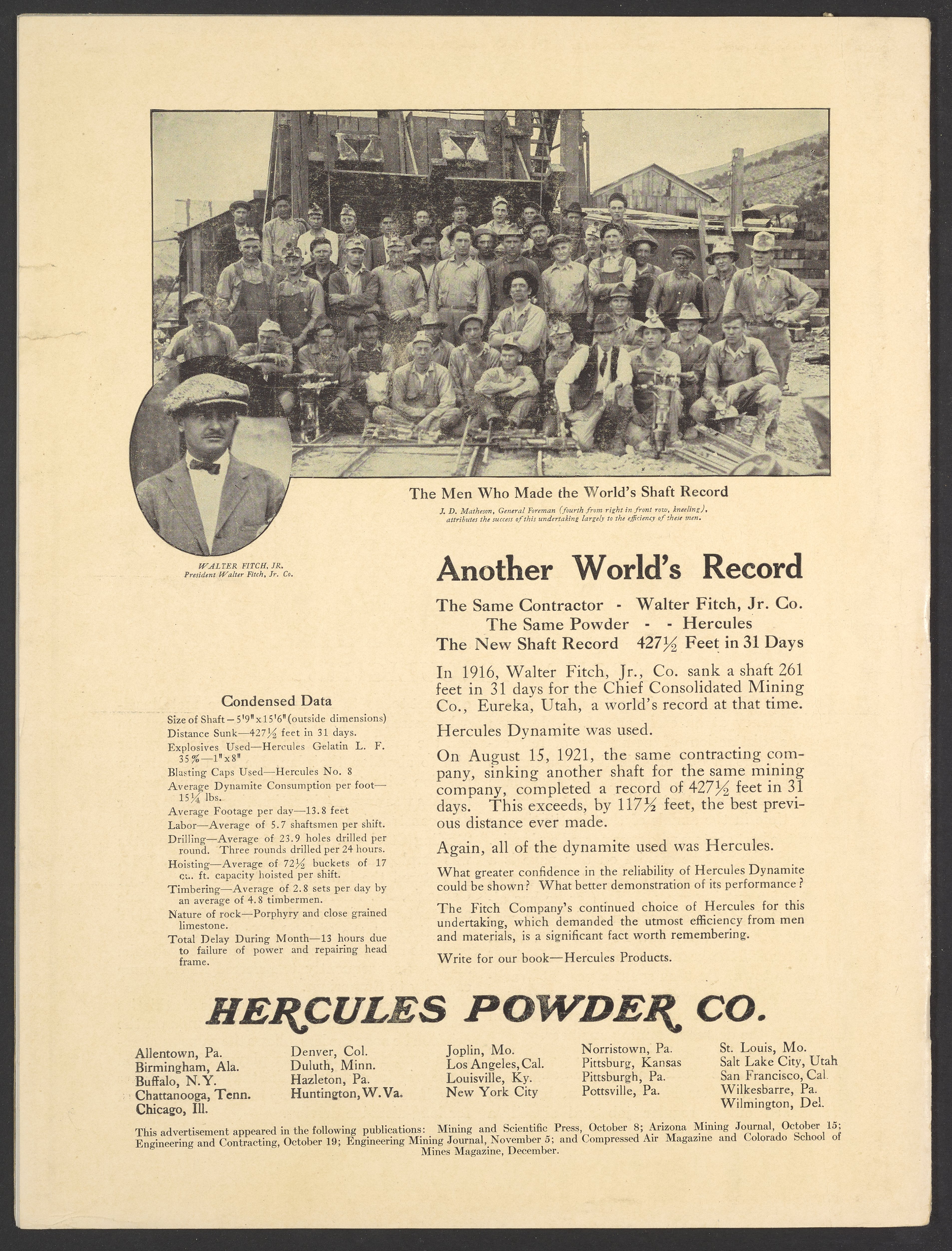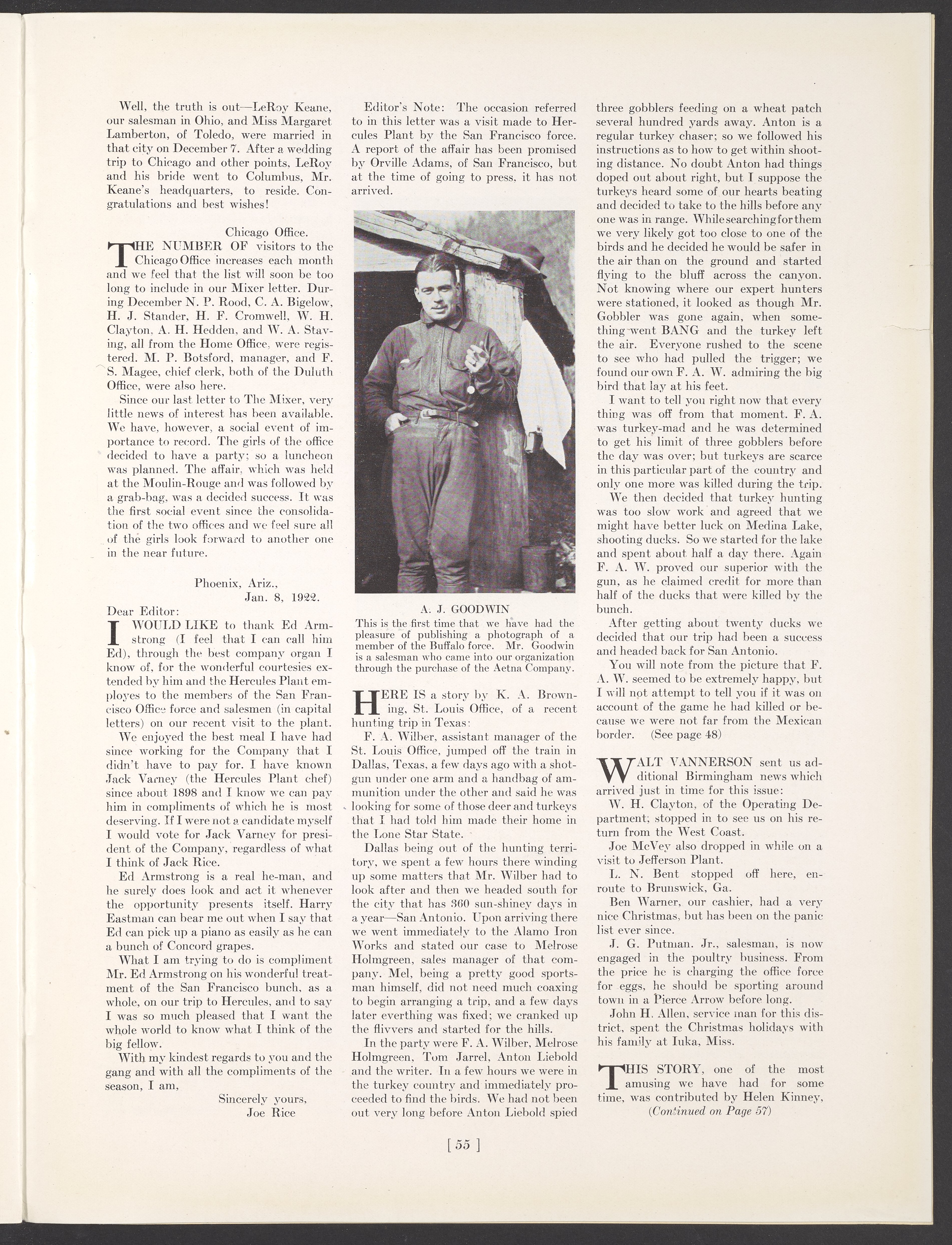 Small JPG1200 x 1578px — 440 KBLarge JPG2880 x 3788px — 2.8 MBFull-sized JPG3795 x 4992px — 4.6 MBOriginal fileTIFF — 3795 x 4992px — 54.3 MBFebruary 1922 issue of The Hercules Mixer, the Hercules Powder Company's in-house publication that provided both historical and technical information and also offered a glimpse of employees' day-to-day lives at the company.