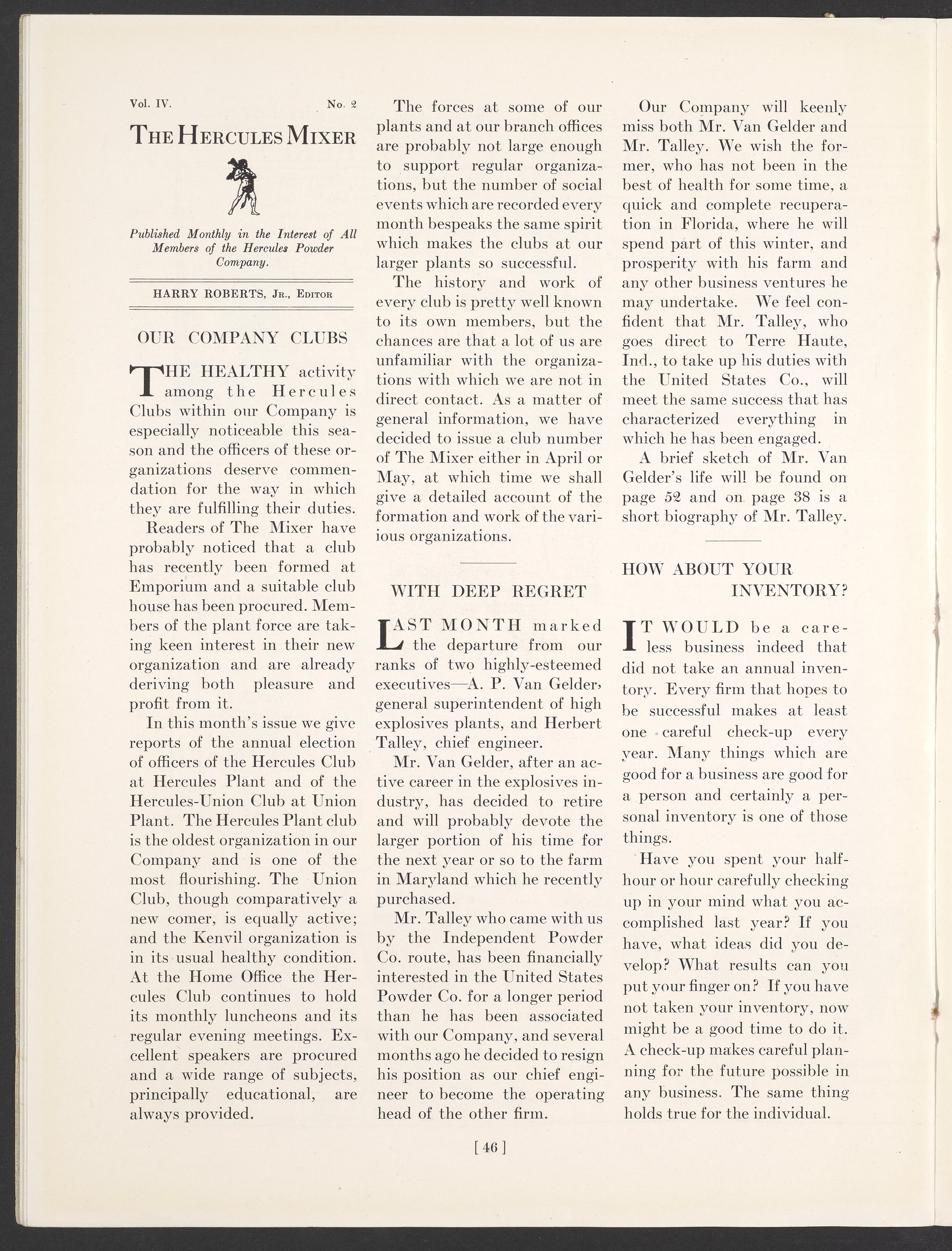 “The Hercules Mixer Volume 4, Number 2.” Wilmington, Delaware: Hercules Incorporated, February 1922. MR057C004. Science History Institute. Philadelphia. https://digital.sciencehistory.org/works/zvic301.