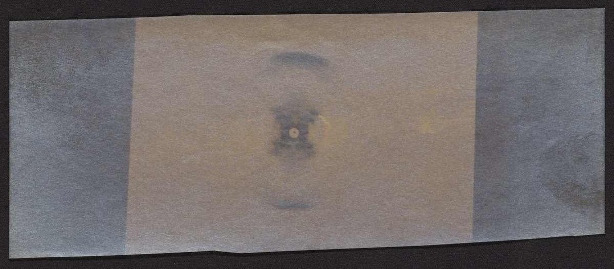 Photostat (early photocopy) reproduction of an X-ray diffraction image of DNA. The original image was taken in 1951 at the University of Leeds, UK by Elwyn Beighton under the supervision of William Astbury (1898-1961). This copy was sent by the historian Robert Olby (1933-2020) to crystallographer Raymond Gosling (1926-2015) in 1968 as part of a discussion about the discovery of DNA's "B" form. The B, or "wet," form of DNA was first described by Gosling and his Ph.D. supervisor Rosalind Franklin (1920-1958) based on their research at Kings College London in 1951-1952.